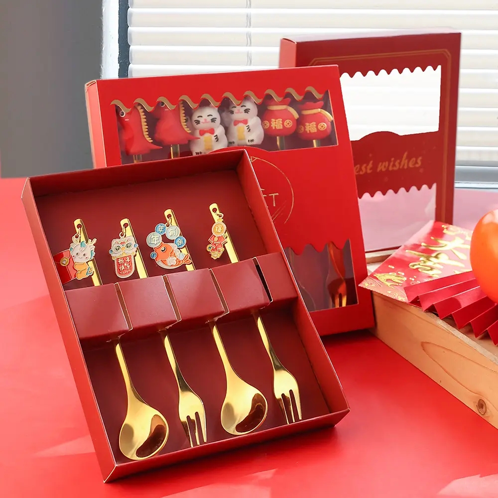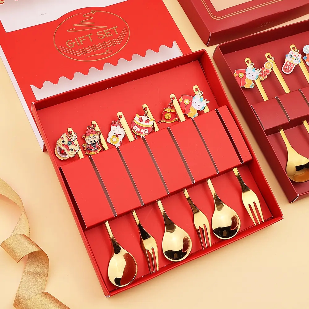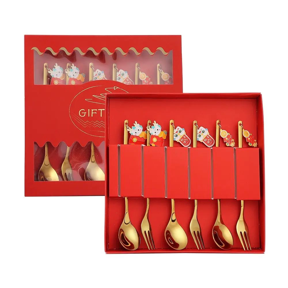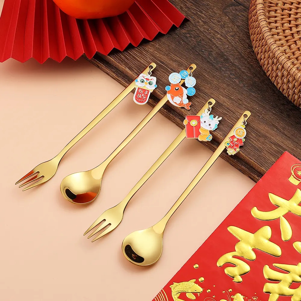DINUO High Quality Stainless Steel Dragon Doll Pendant Spoon Fork Tableware Gift Set JYDN-L-109