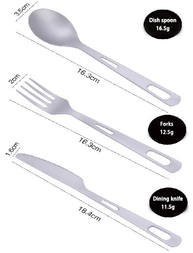 Titanium knife, fork, spoon 3-piece set