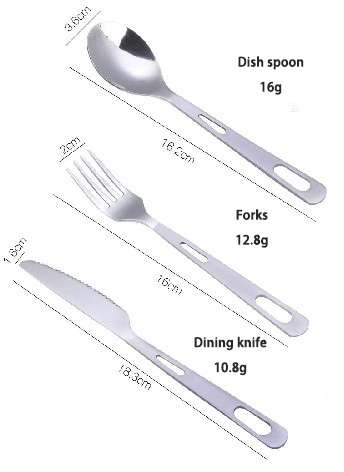 Titanium spoon, titanium fork, titanium knife, titanium chopsticks, titanium bowl, titanium plate, titanium tableware