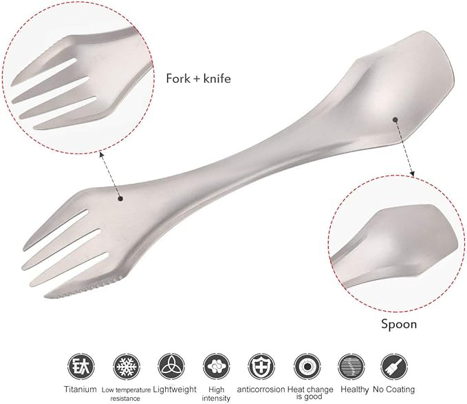 DINUO titanium lightweight spoon fork 3-in-1 tableware, suitable for outdoor camping JYDN-L-126