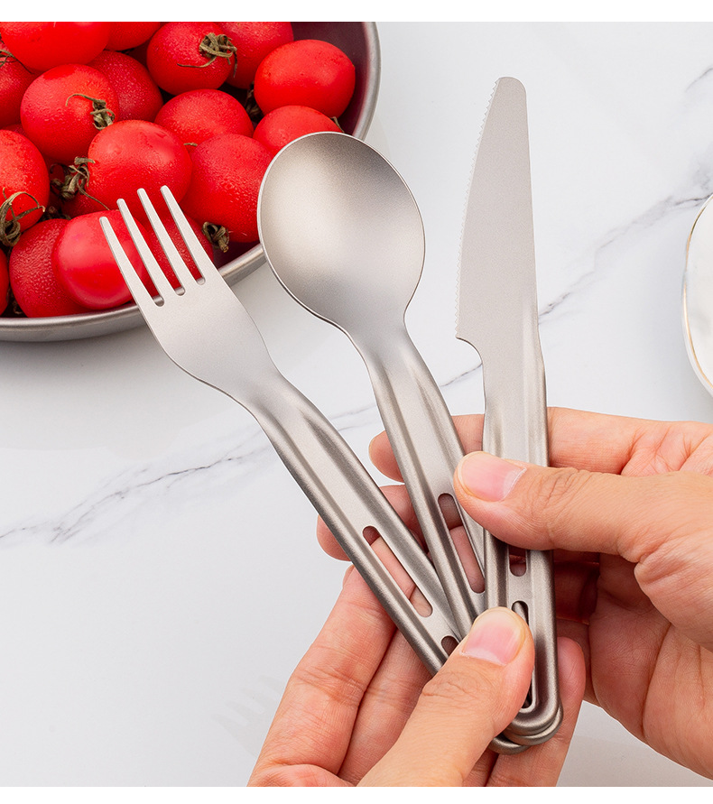 Titanium spoon, titanium fork, titanium knife, titanium chopsticks, titanium bowl, titanium plate, titanium tableware