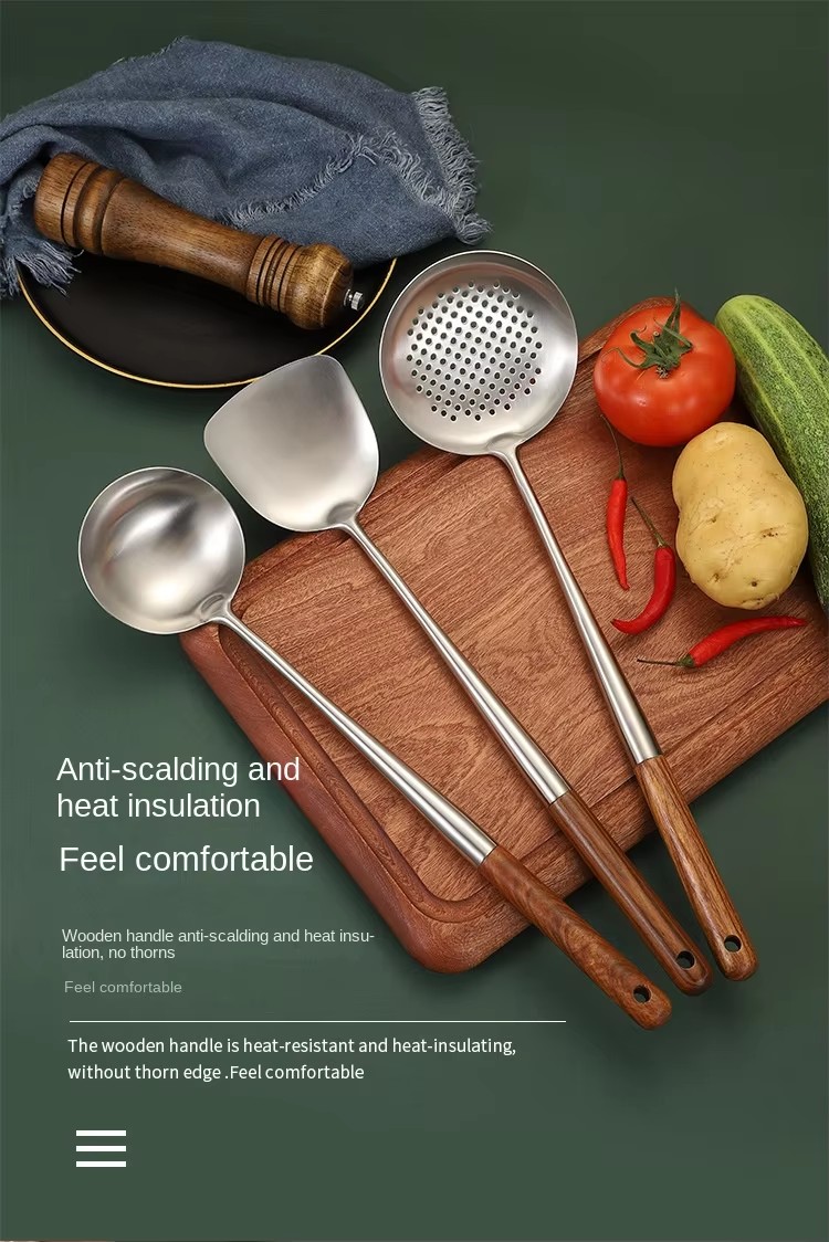 DINUO Titanium Kitchen Cooking Set Wooden Handle Cooking Utensils, spatula, filter pan JYDN-L-133