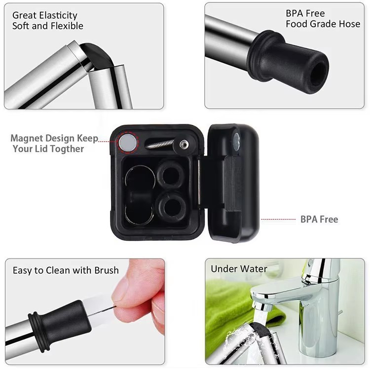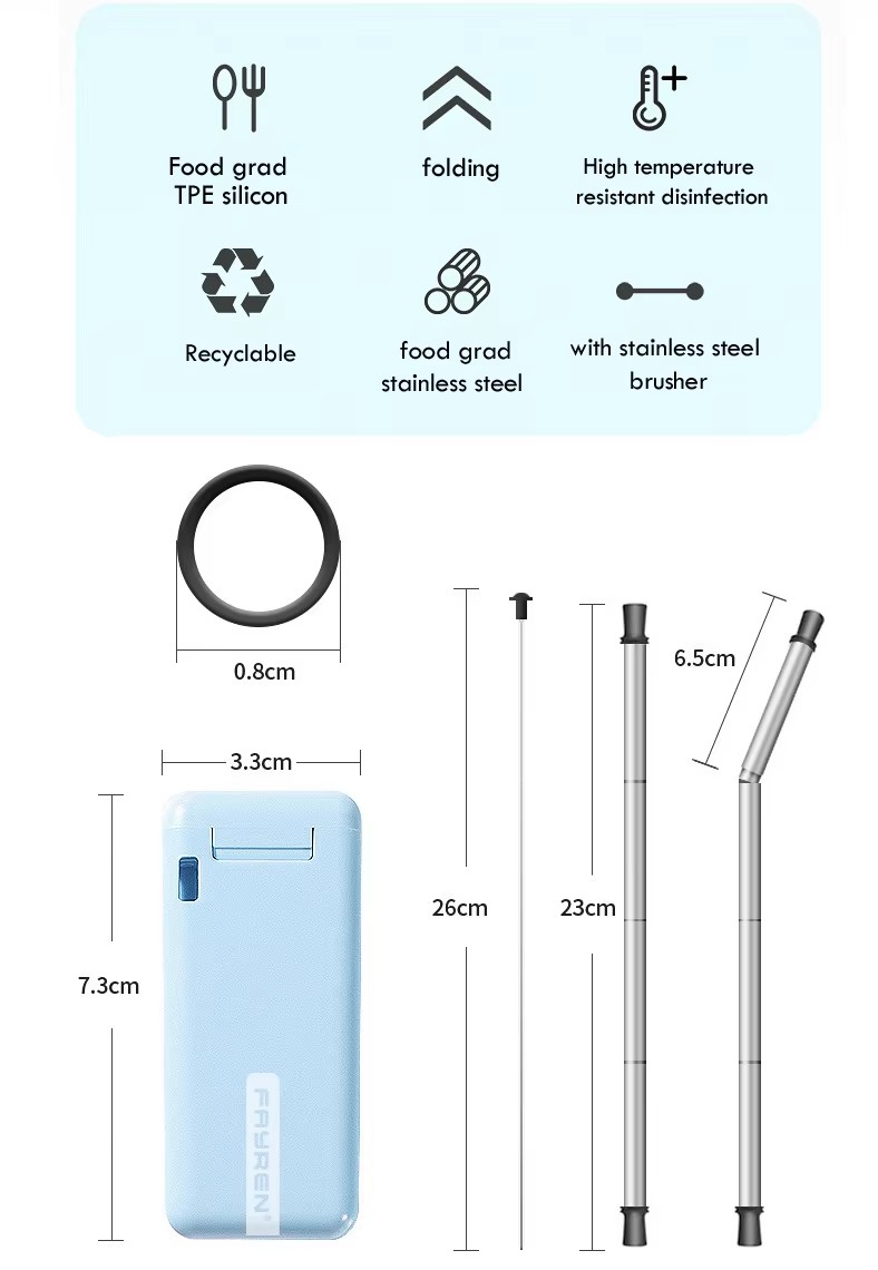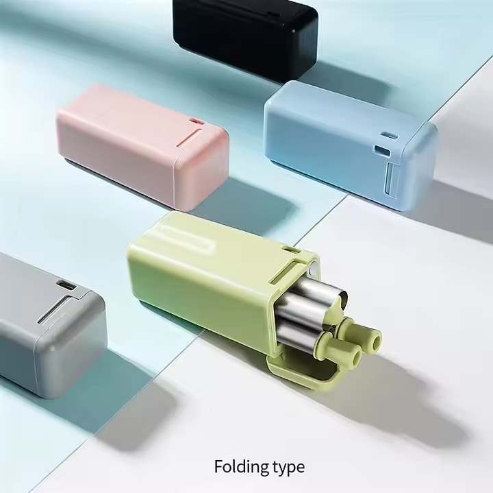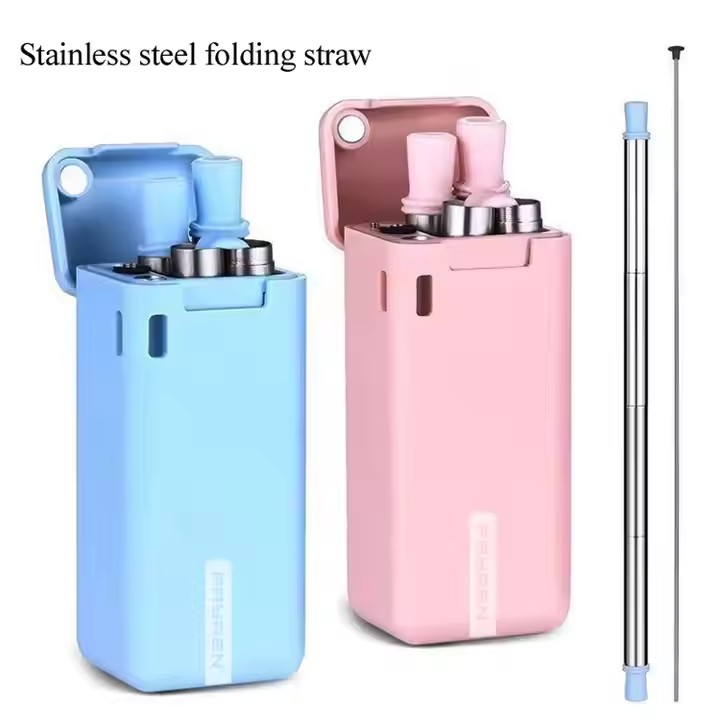 DINUO Metal Stainless Steel 304 Portable Foldable Straw with Cleaning Brush Plastic Box JYDN-L-186