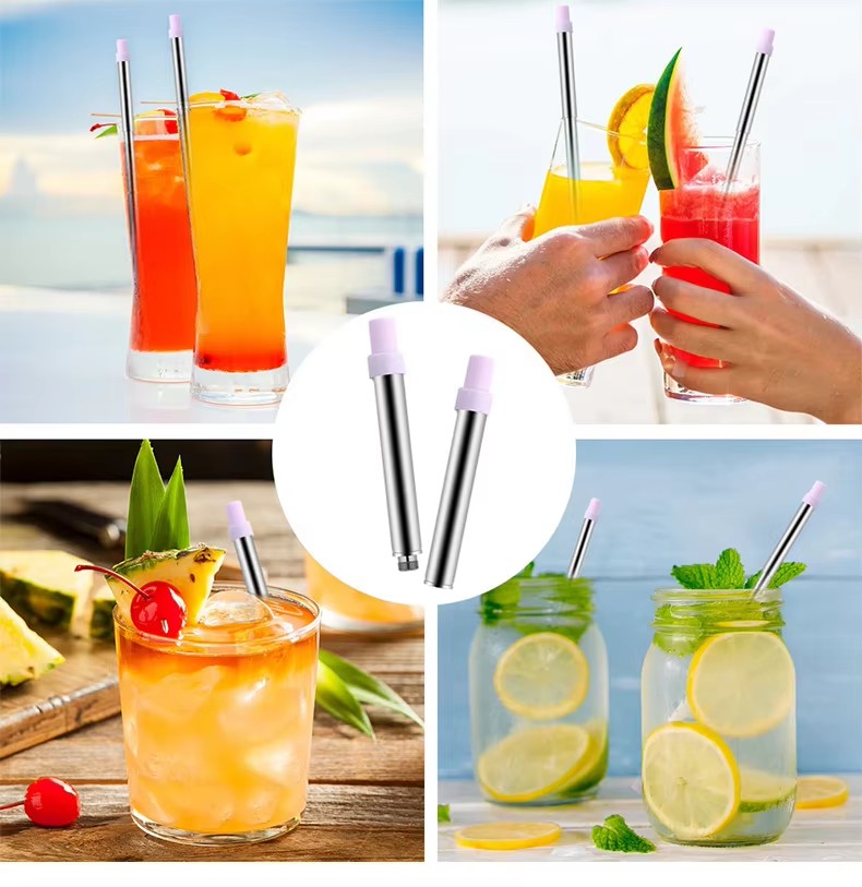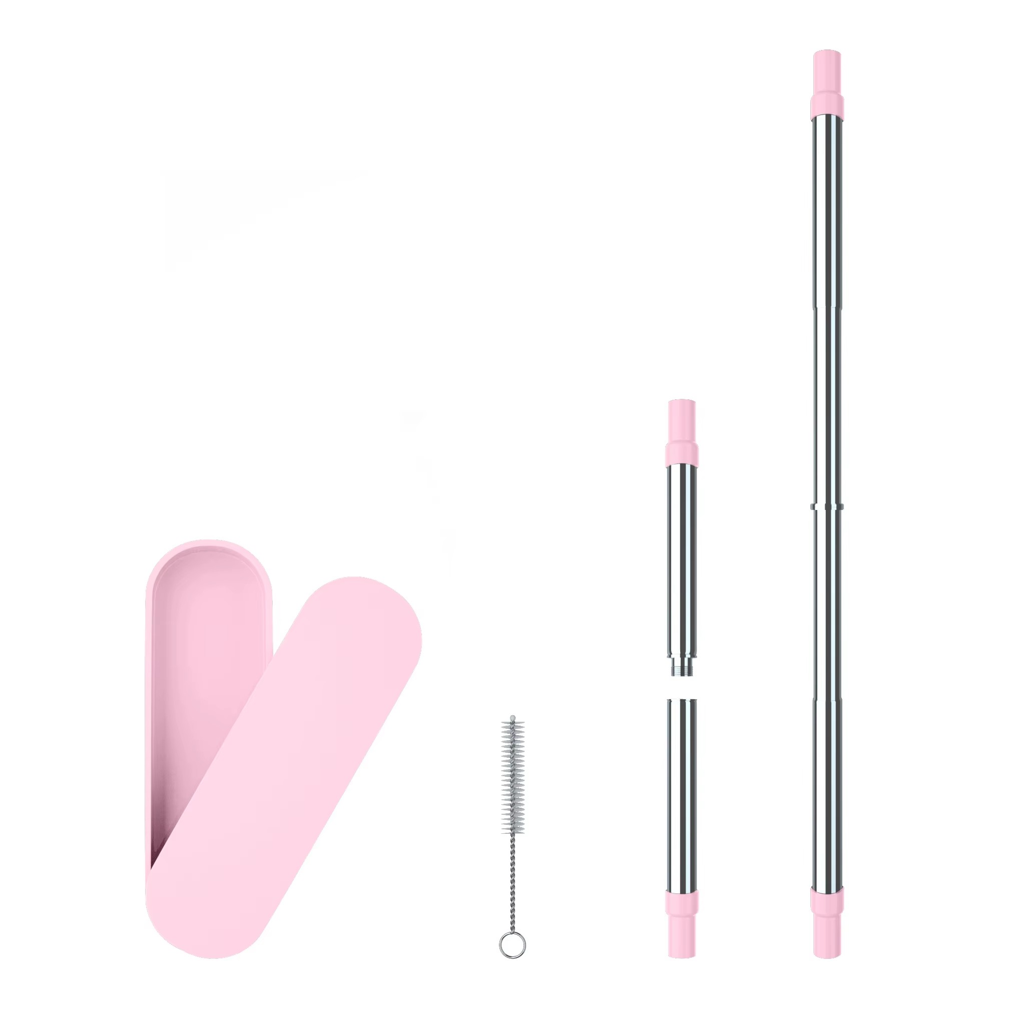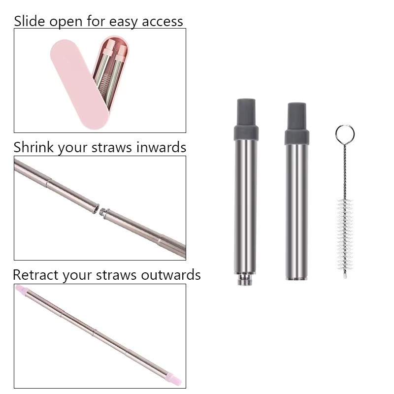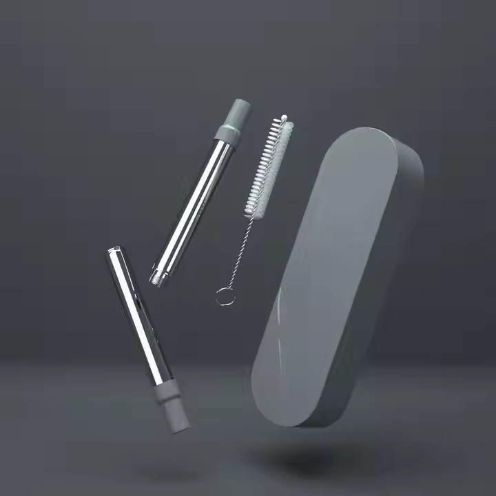 DINUO Reusable Foldable Eco friendly Silicone Straw with Cleaning Brush Plastic Box JYDN-L-187