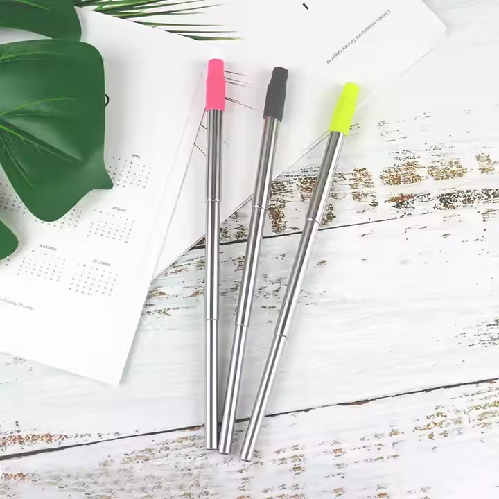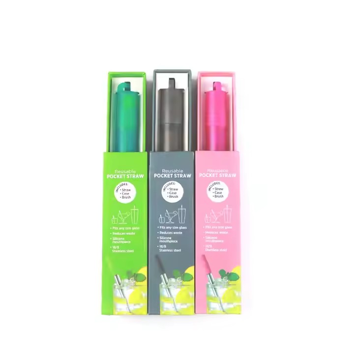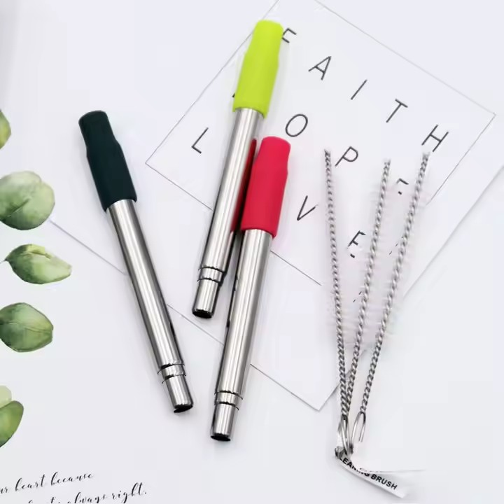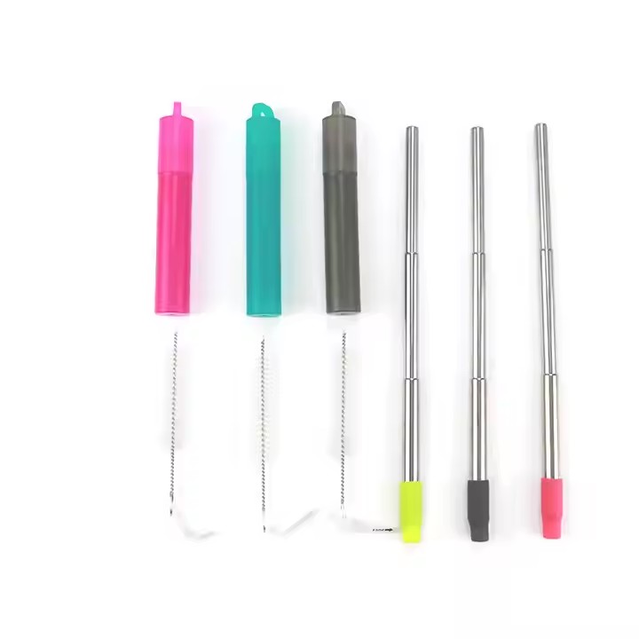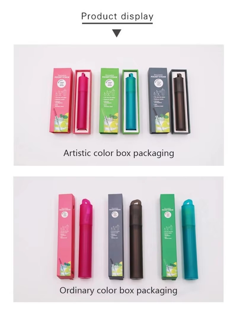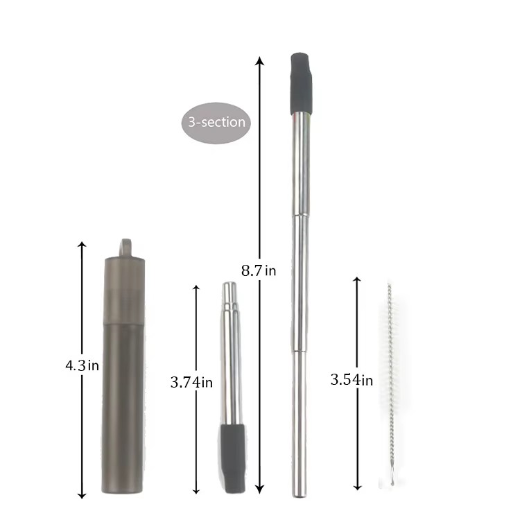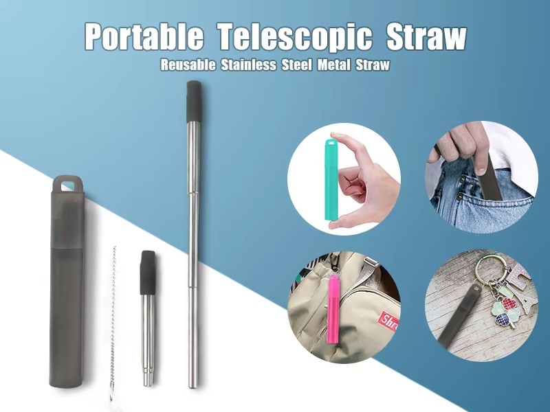DINUO portable PP box stainless steel reusable foldable telescopic straw brush JYDN-L-189