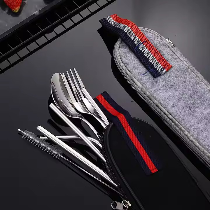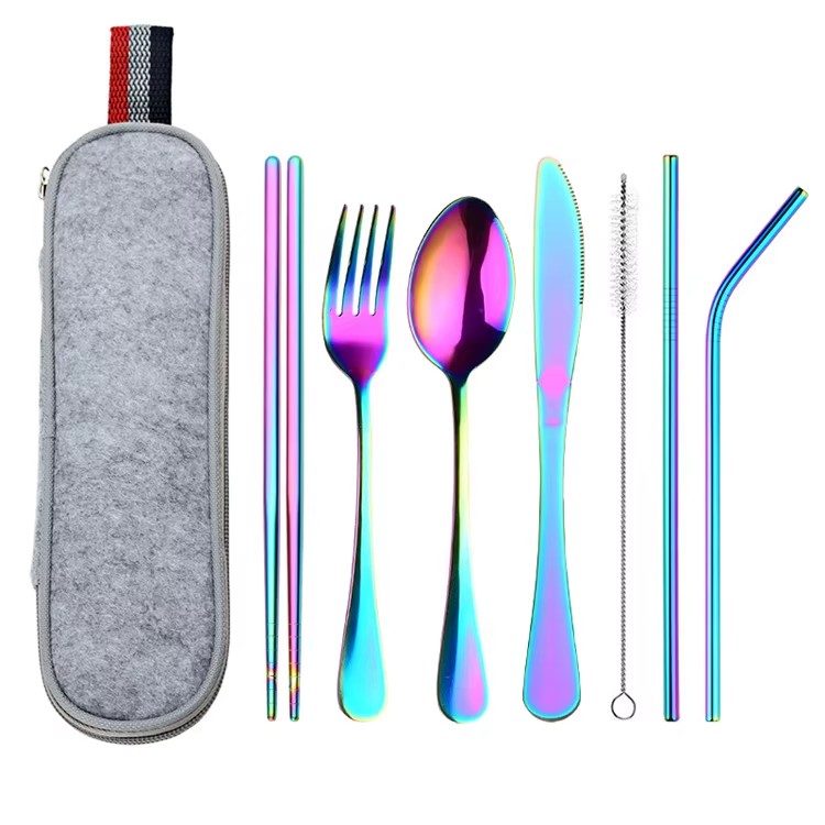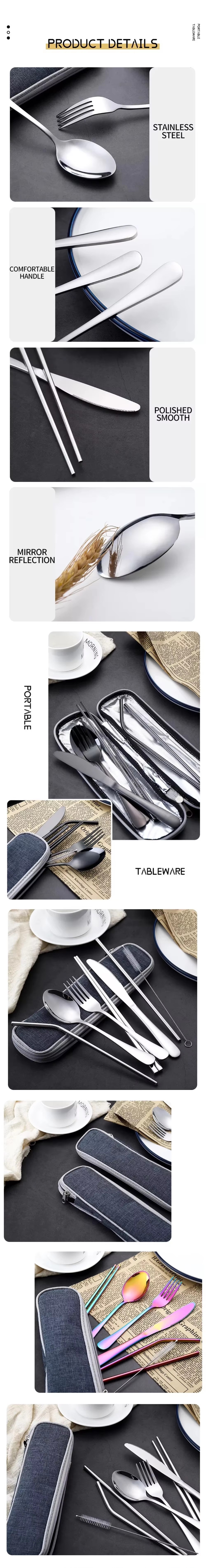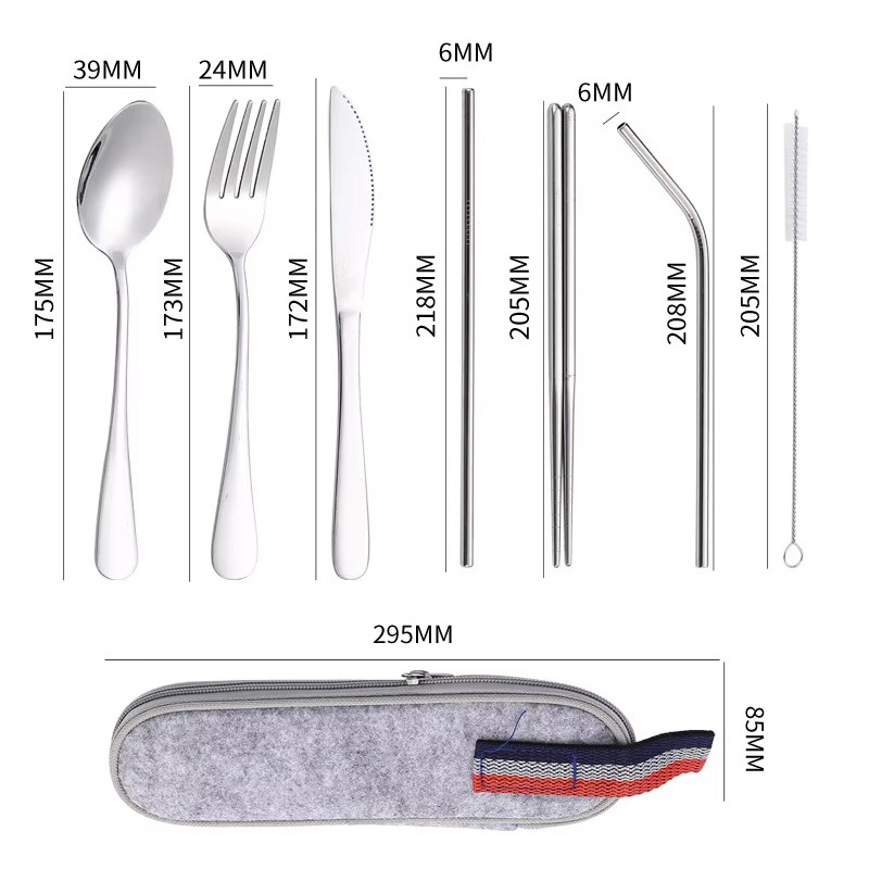 DINUO Stainless Steel 7-Piece Portable Western Tableware Travel Work Camping Picnic JYDN-L-192