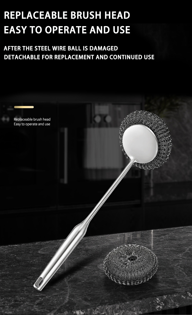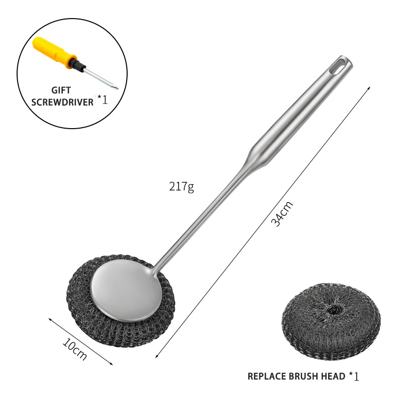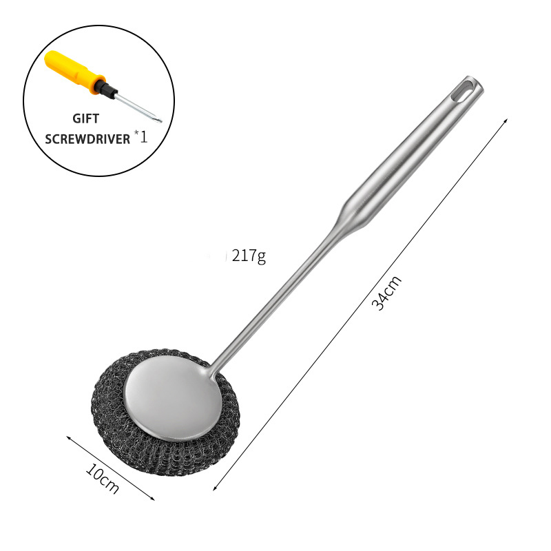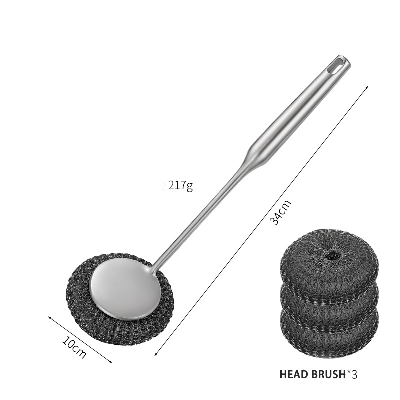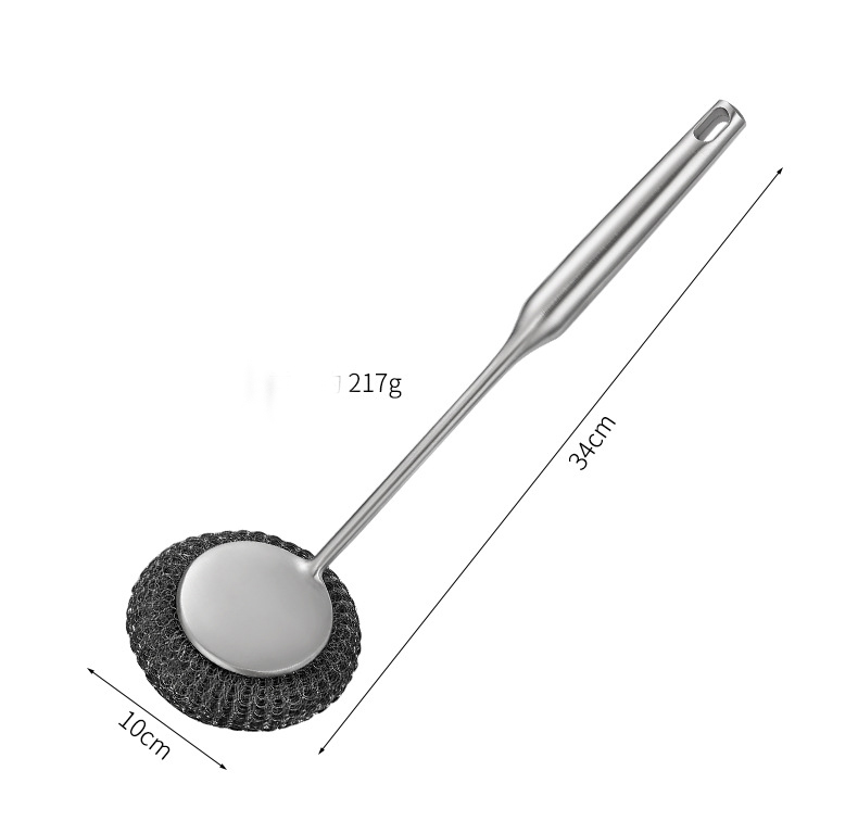DINUO stainless steel brush pot kitchen specific long handled steel wire ball pot brush JYDN-L-195