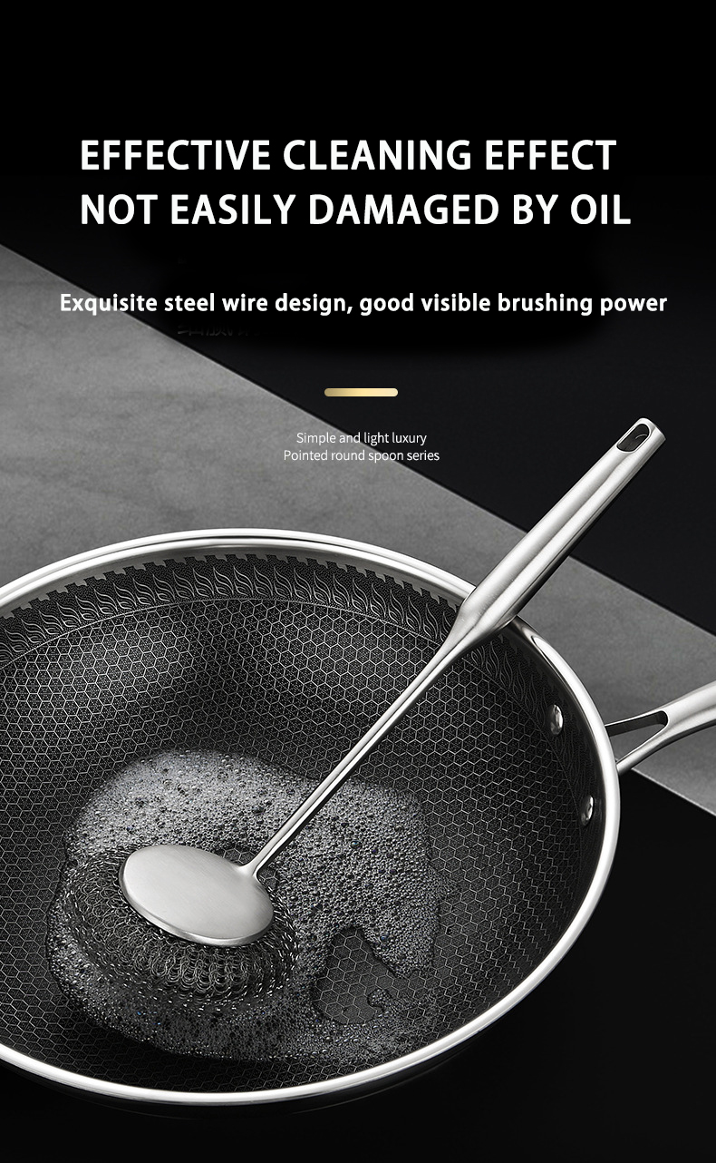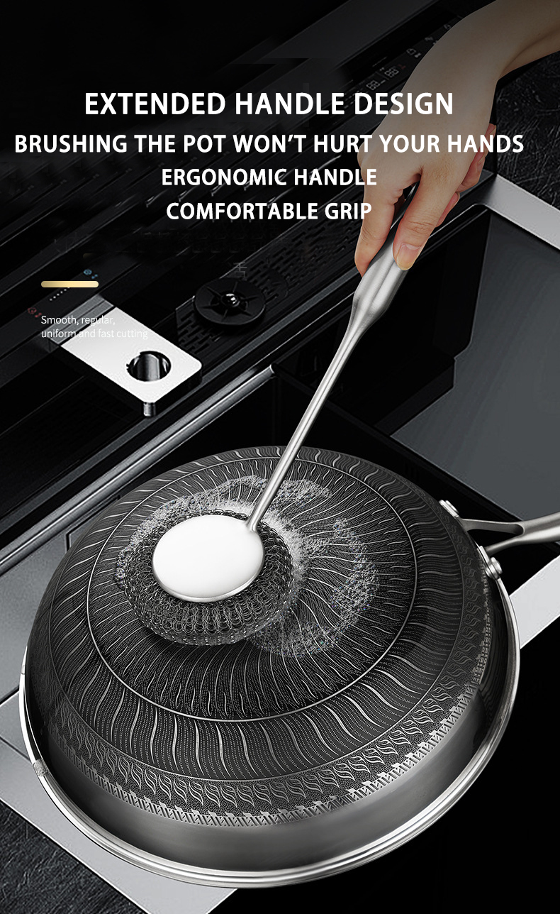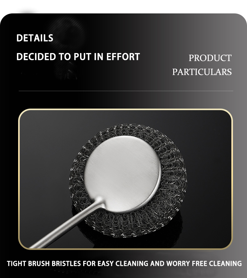 DINUO stainless steel brush pot kitchen specific long handled steel wire ball pot brush JYDN-L-195