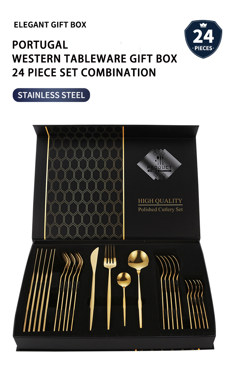 DINUO Portugal Stainless Steel 24 Piece cutlery set, knife, fork, spoon set, 6-person JYDN-L-196