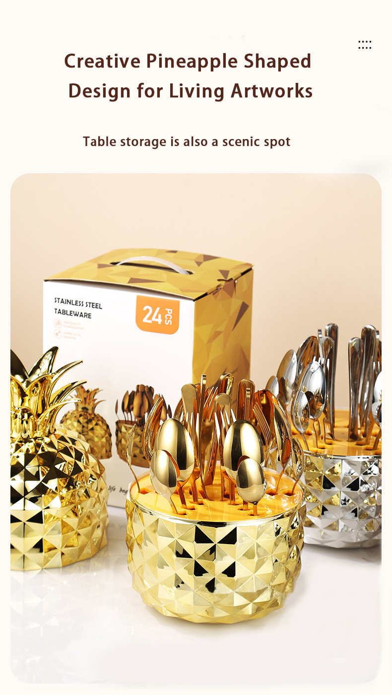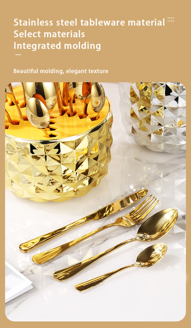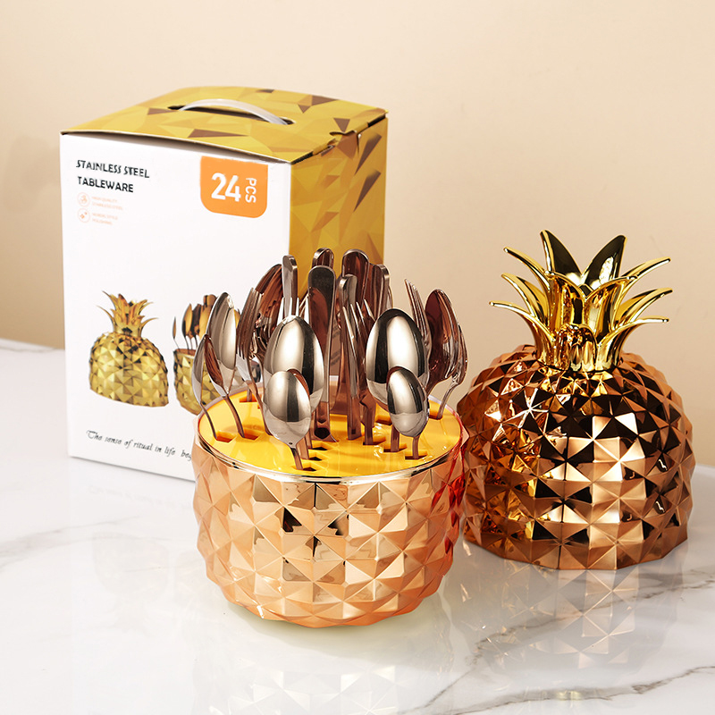 DINUO Pineapple ABS Mood Egg Stainless Steel Tableware Western Knife, Fork and Spoon Set JYDN-L-206
