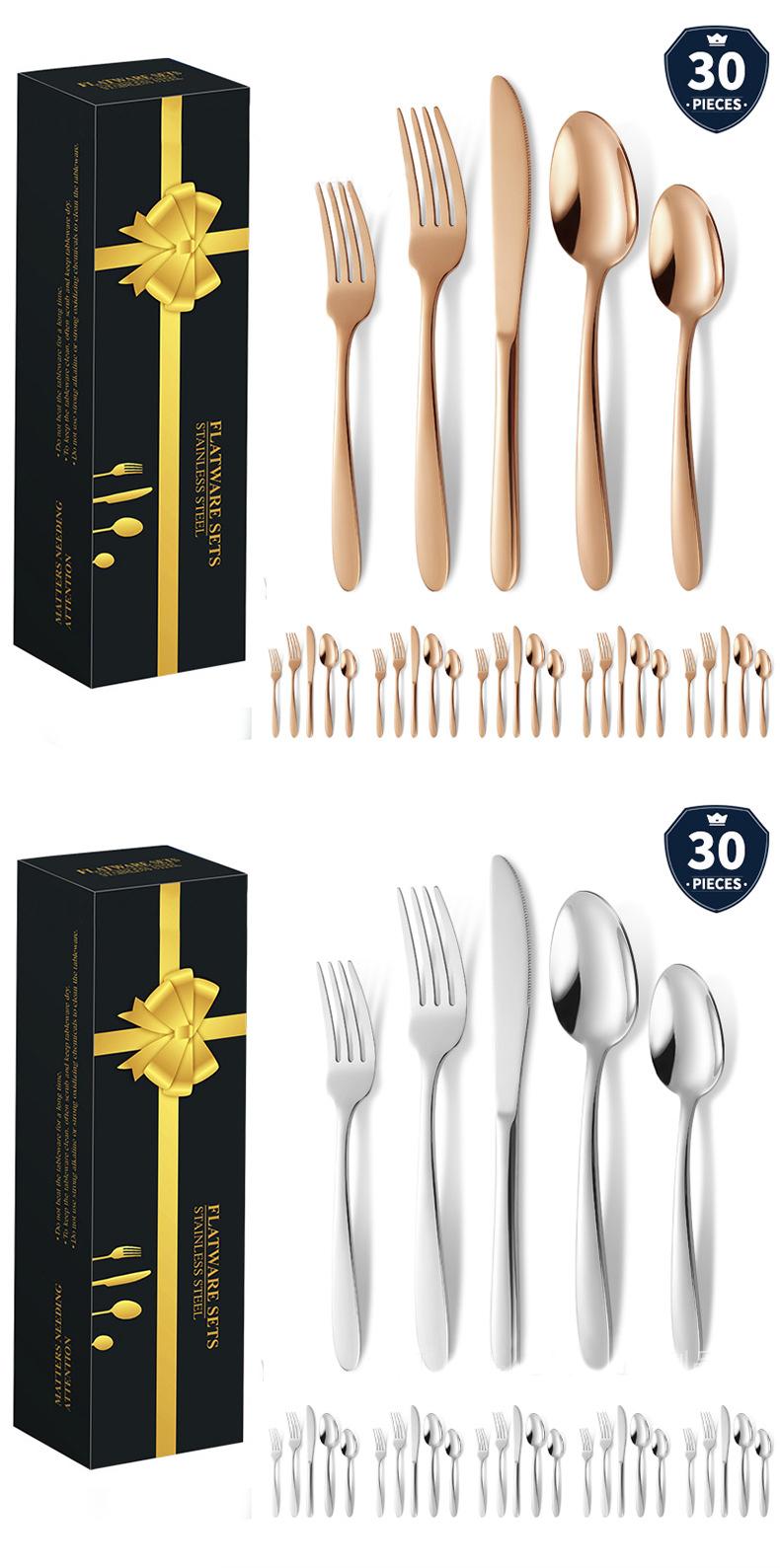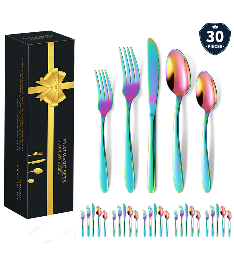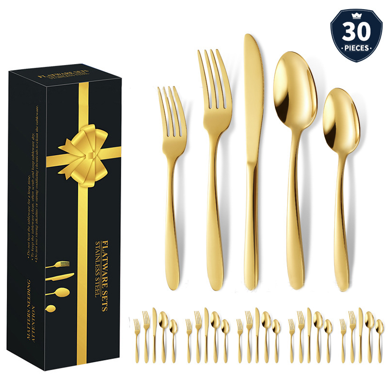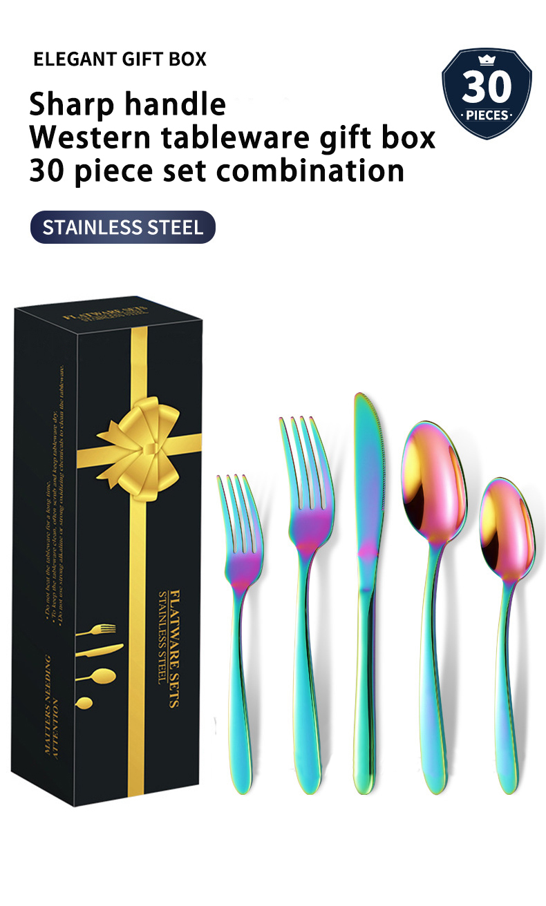 DINUO Stainless Steel 30 Piece Western style Steak Knife, Fork, Spoon Tableware Gift Box JYDN-L-209