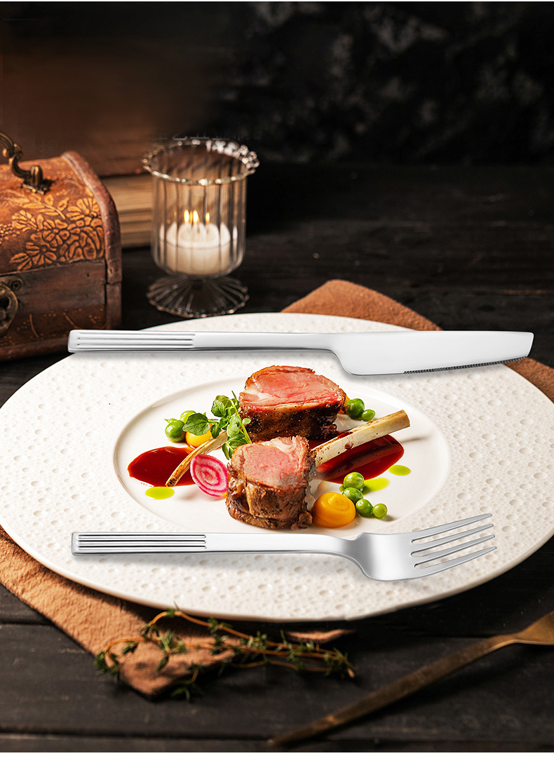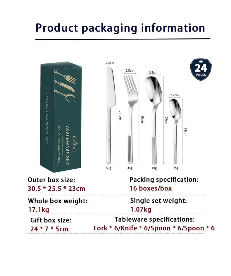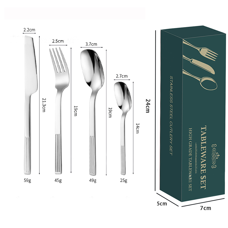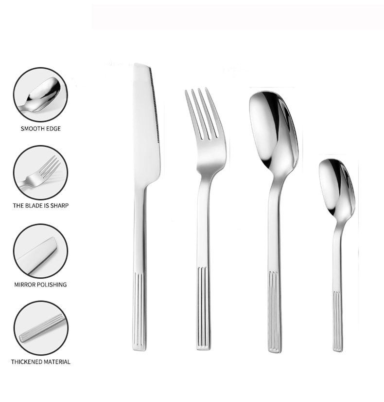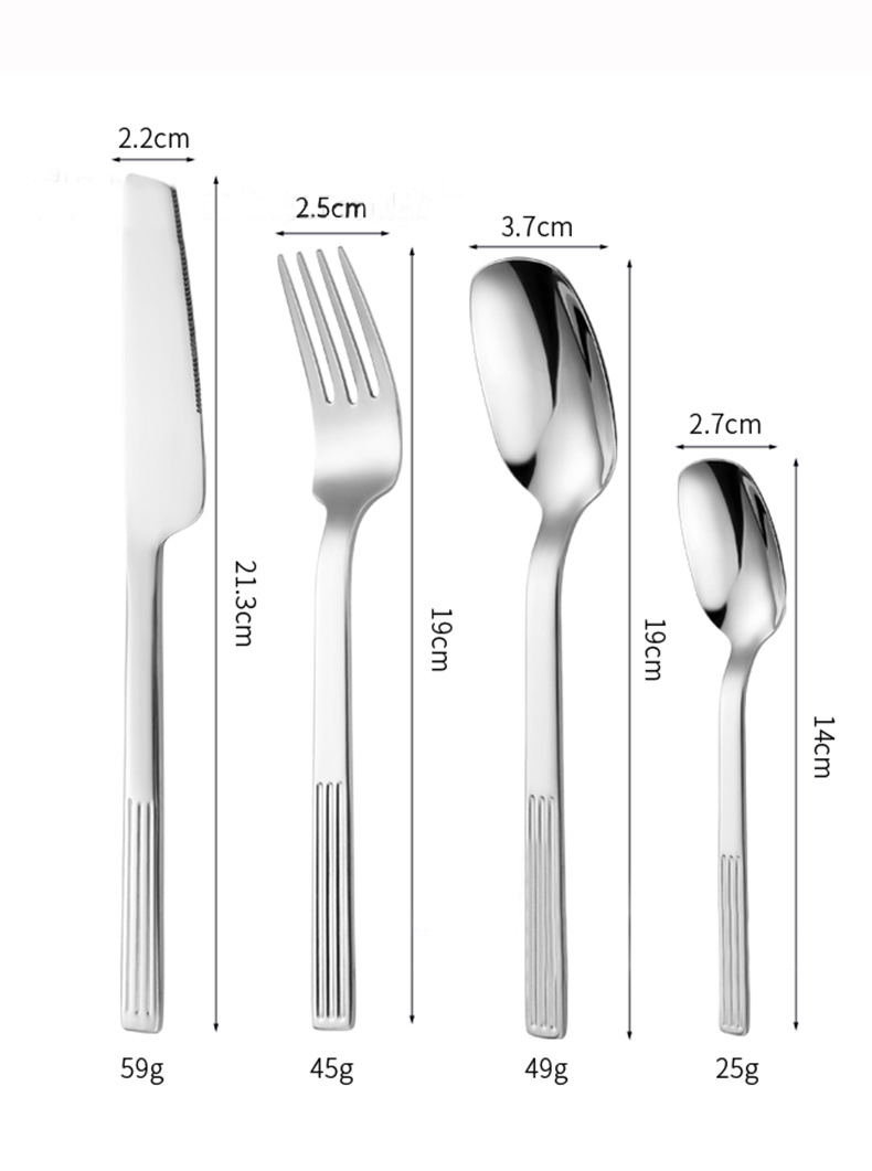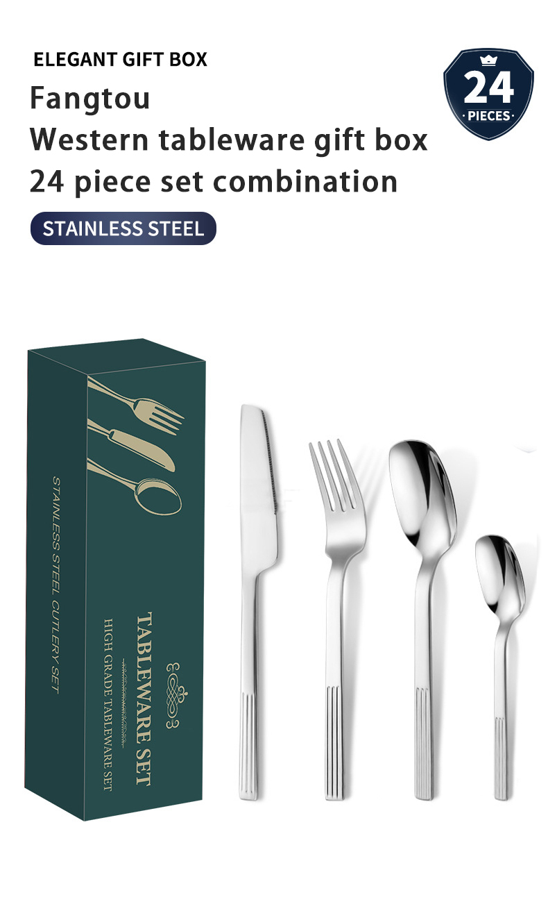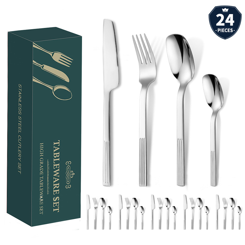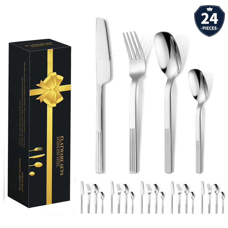 DINUO Stainless Steel 24 Piece Set Western Hotel Square Head Striped Tableware JYDN-L-210