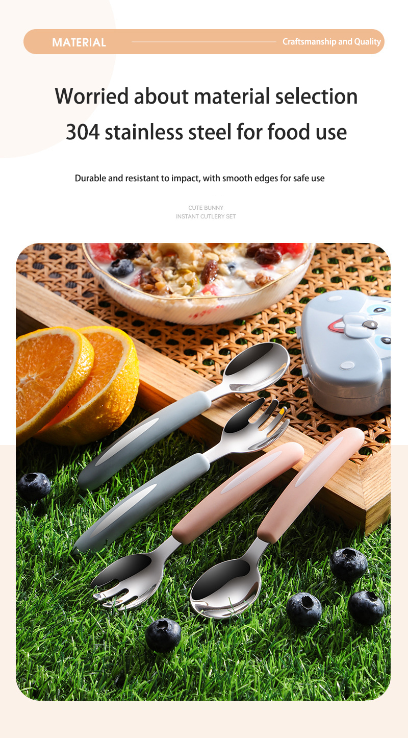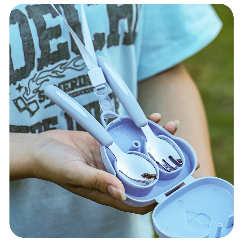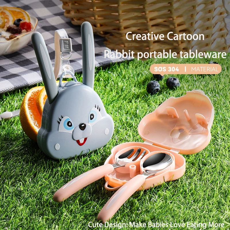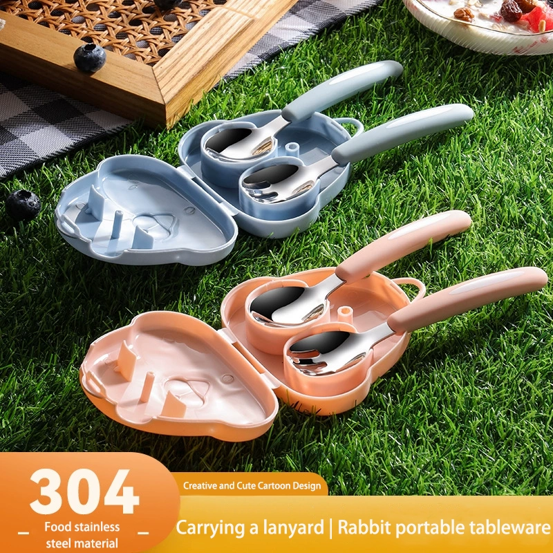DINUO304 stainless steel rabbit portable hanging neck fork spoon cutlery set JYDN-L-223
