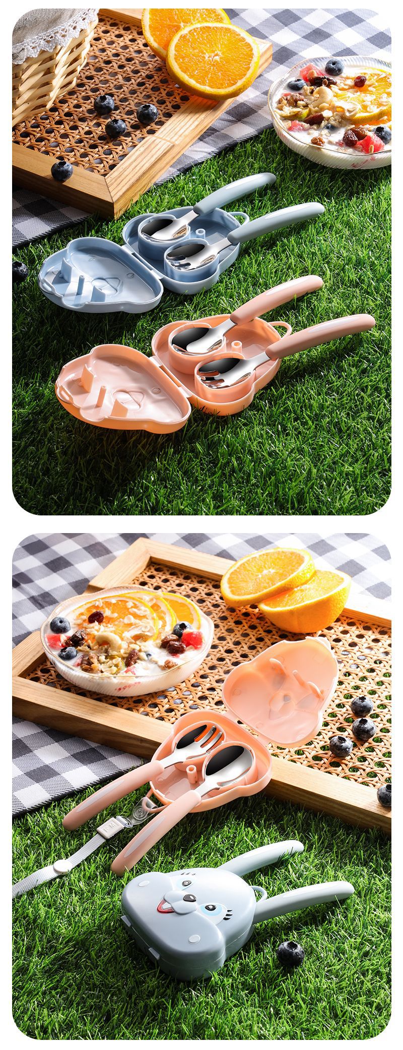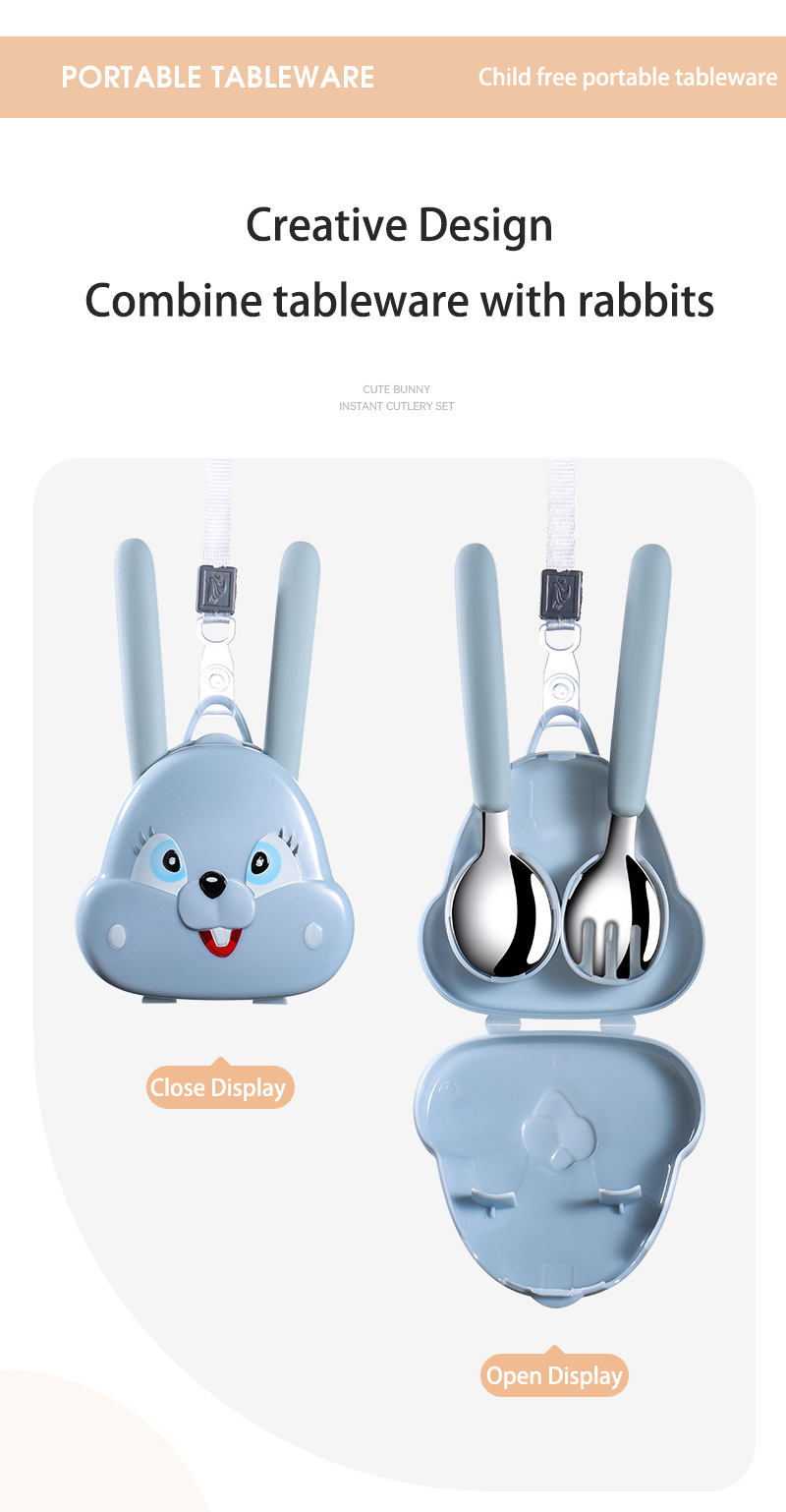 Portable rabbit spoon fork [Backed blue]