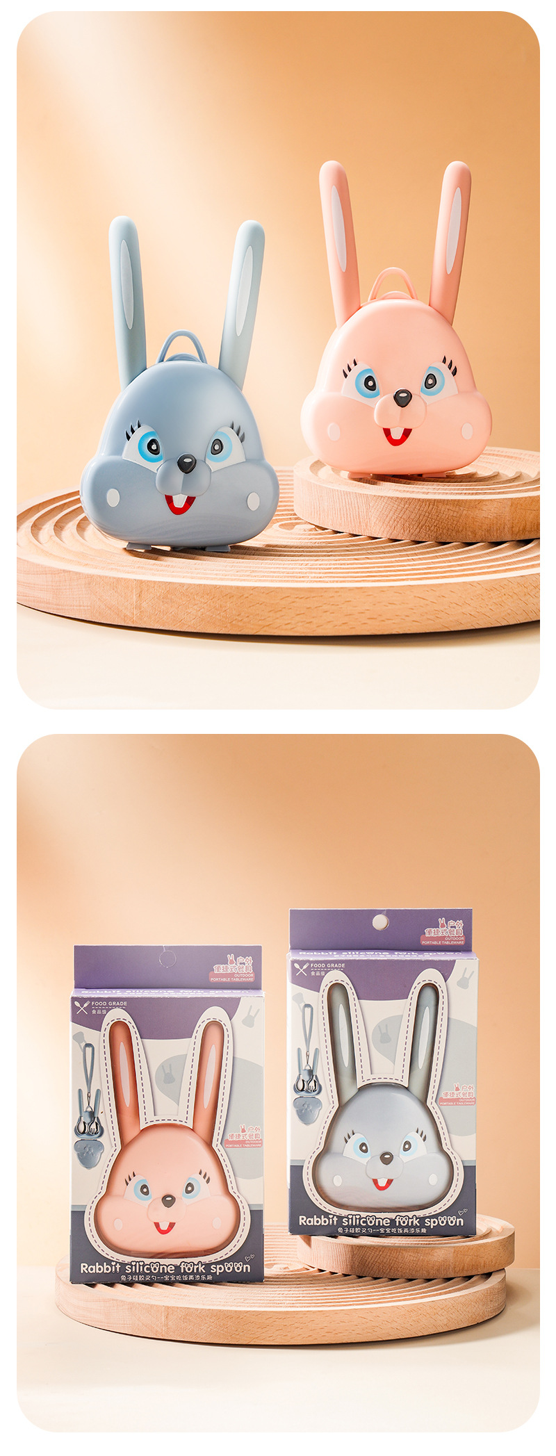 Portable rabbit spoon fork [Box pink]