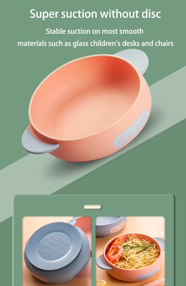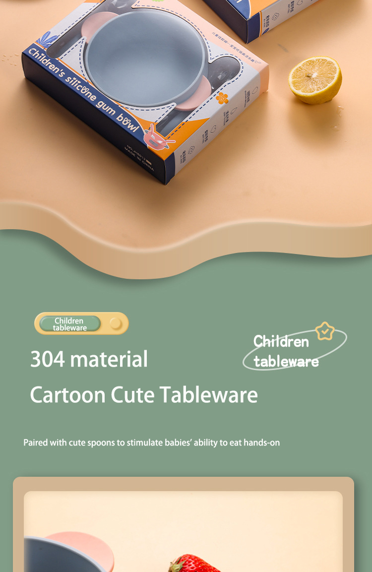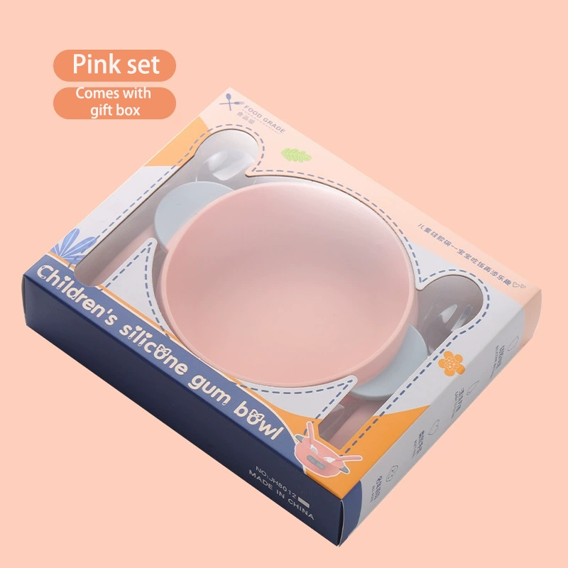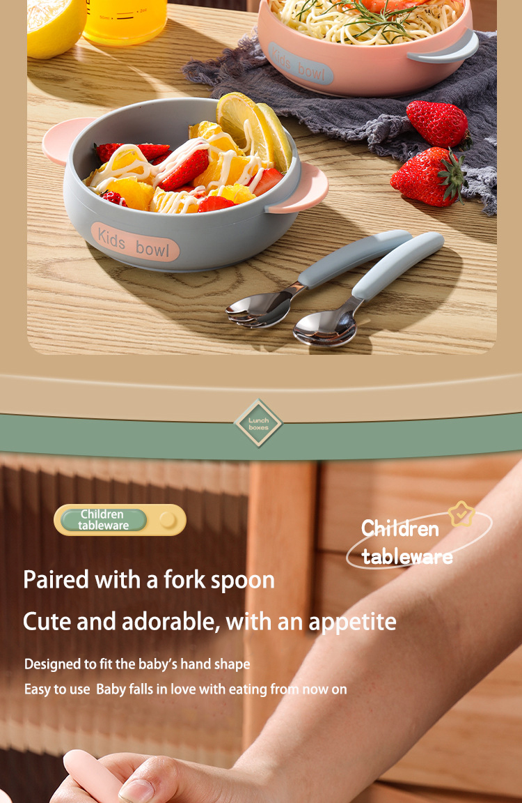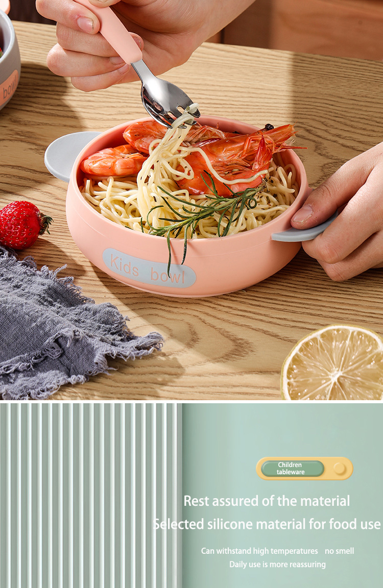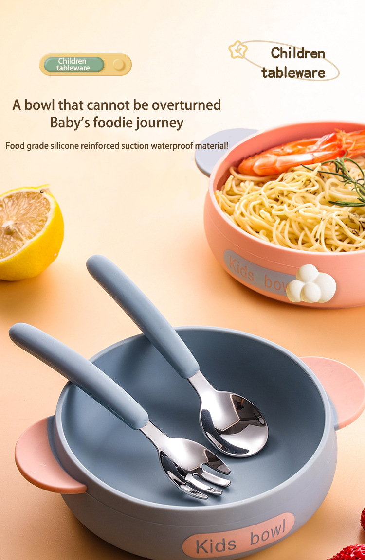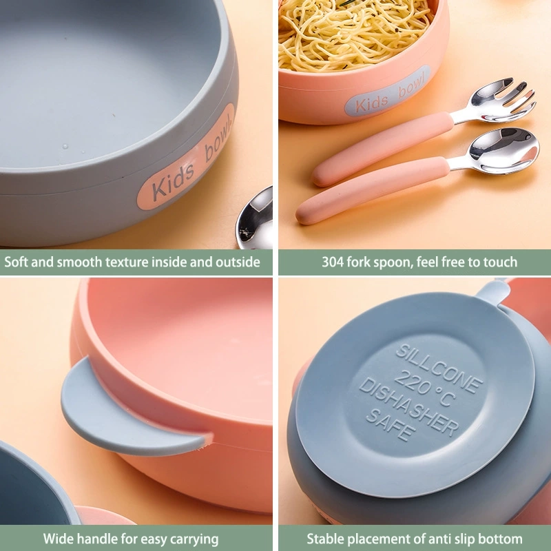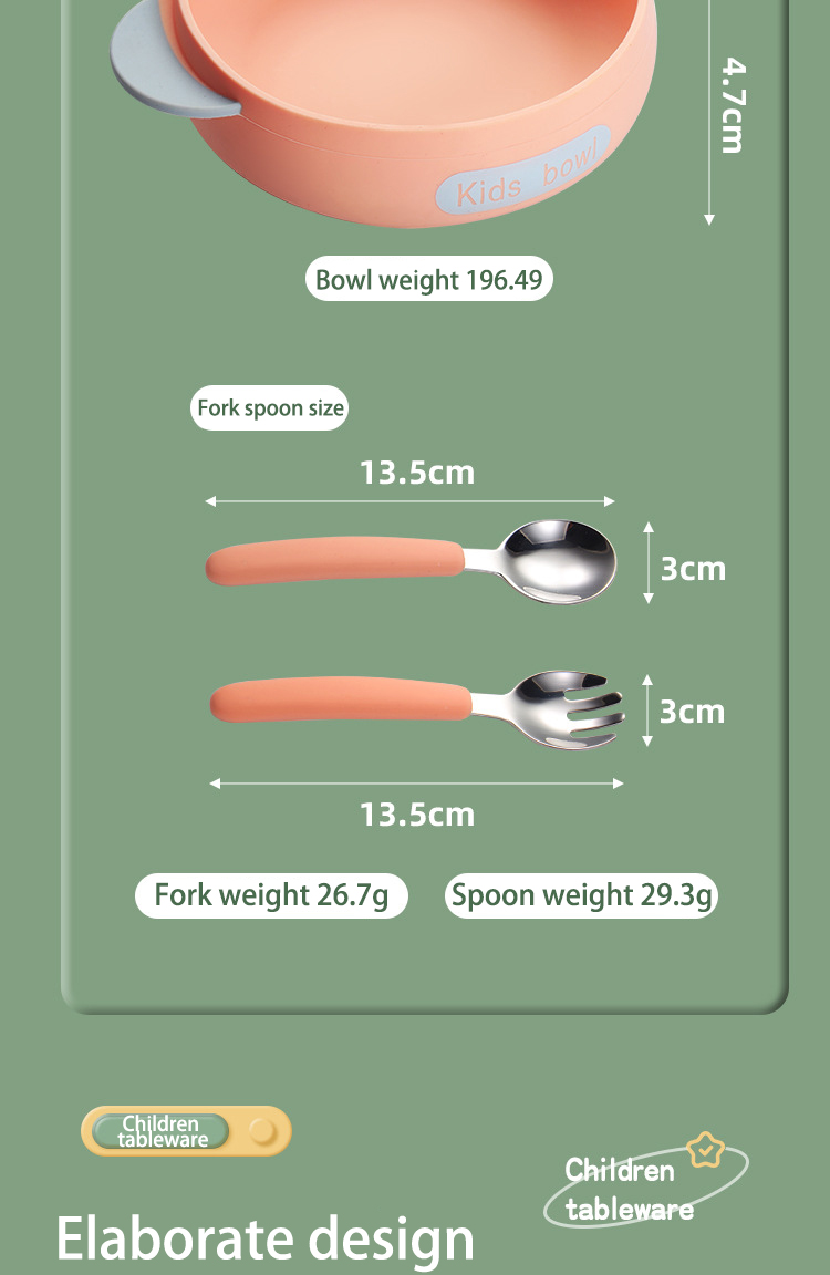 DINUO Infant Silicone Integrated Round Bowl with Fork Spoon JYDN-L-224