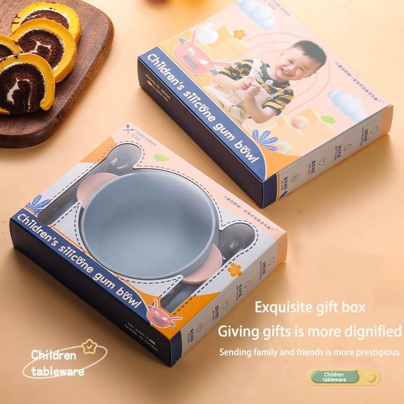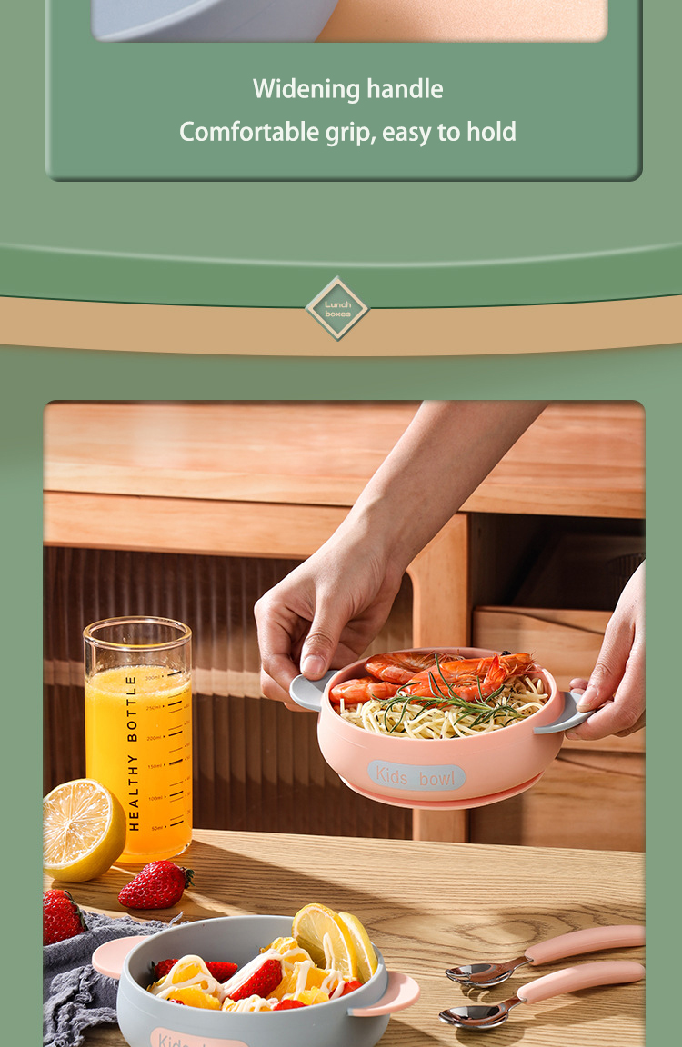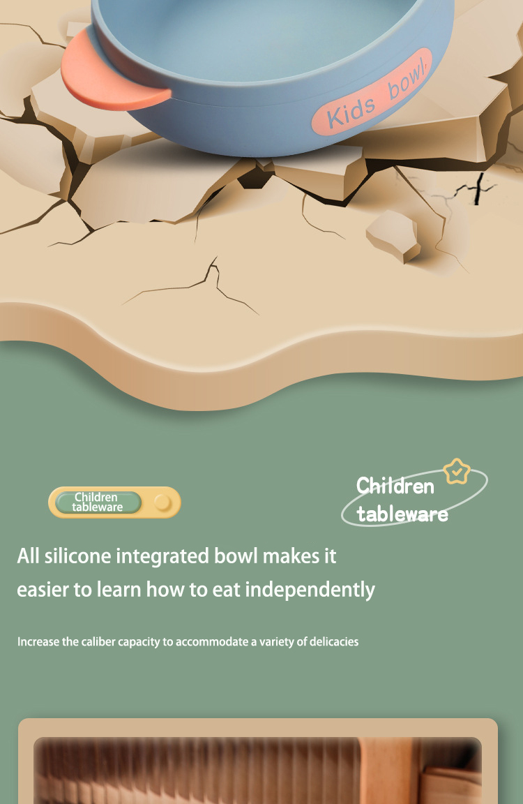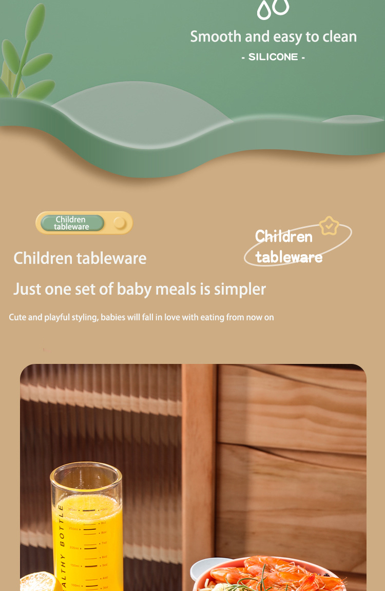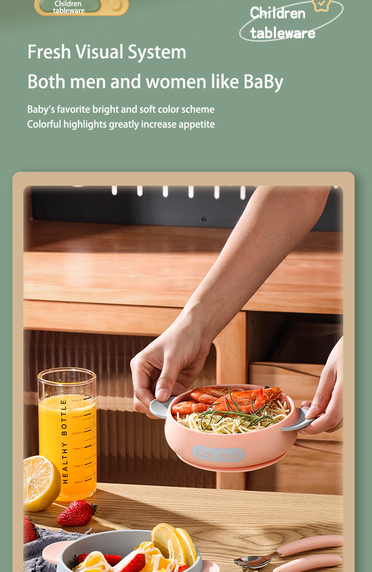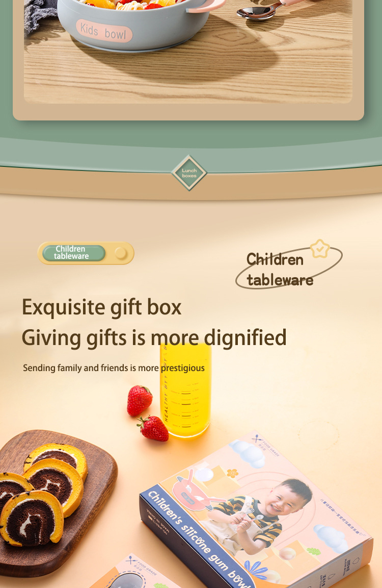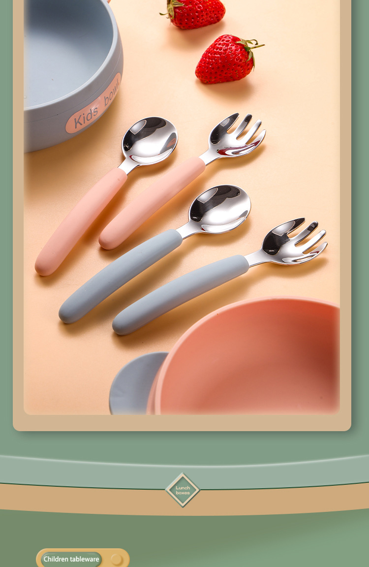 DINUO Infant Silicone Integrated Round Bowl with Fork Spoon JYDN-L-224