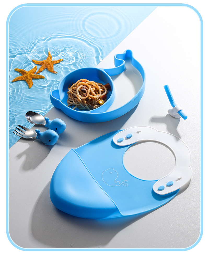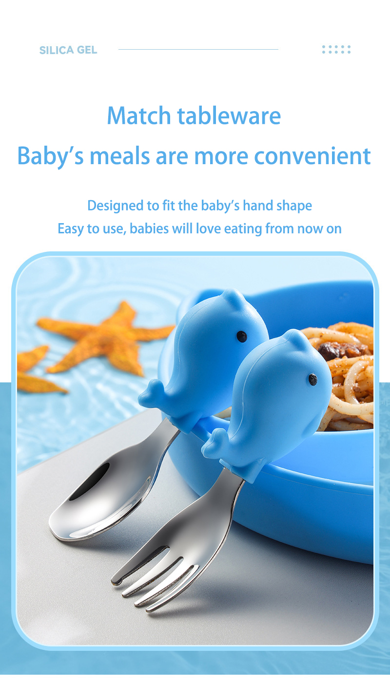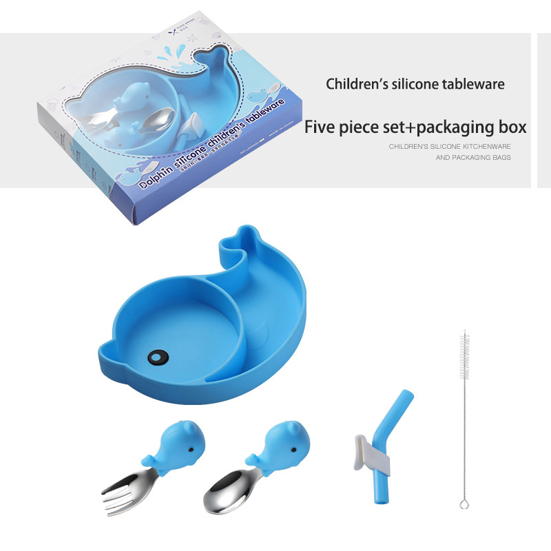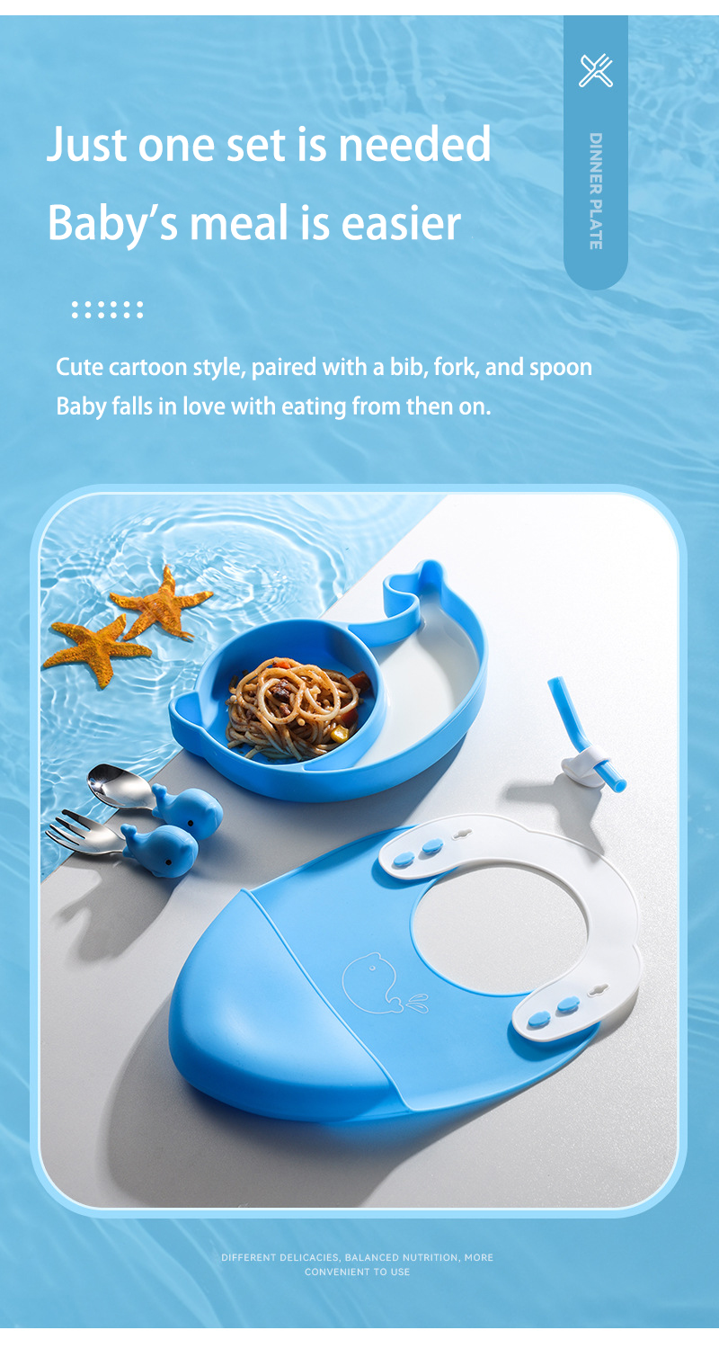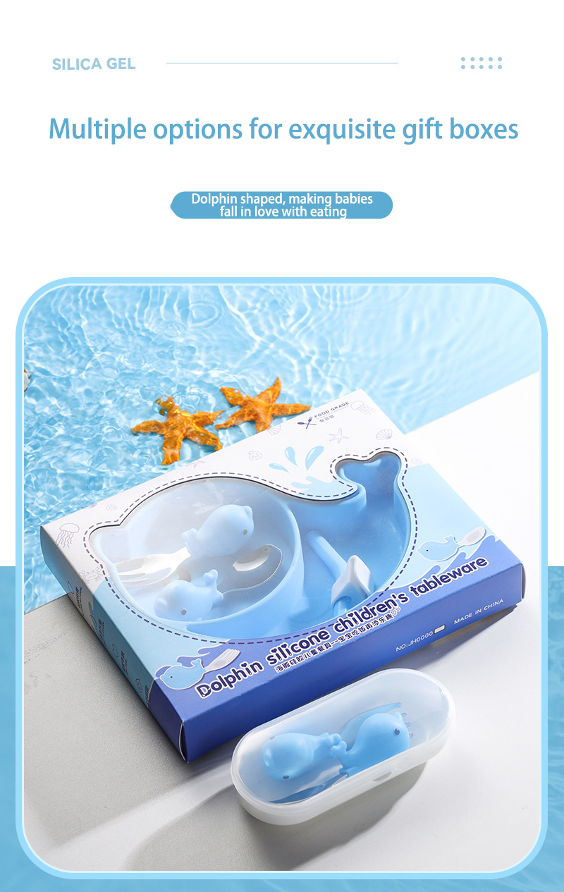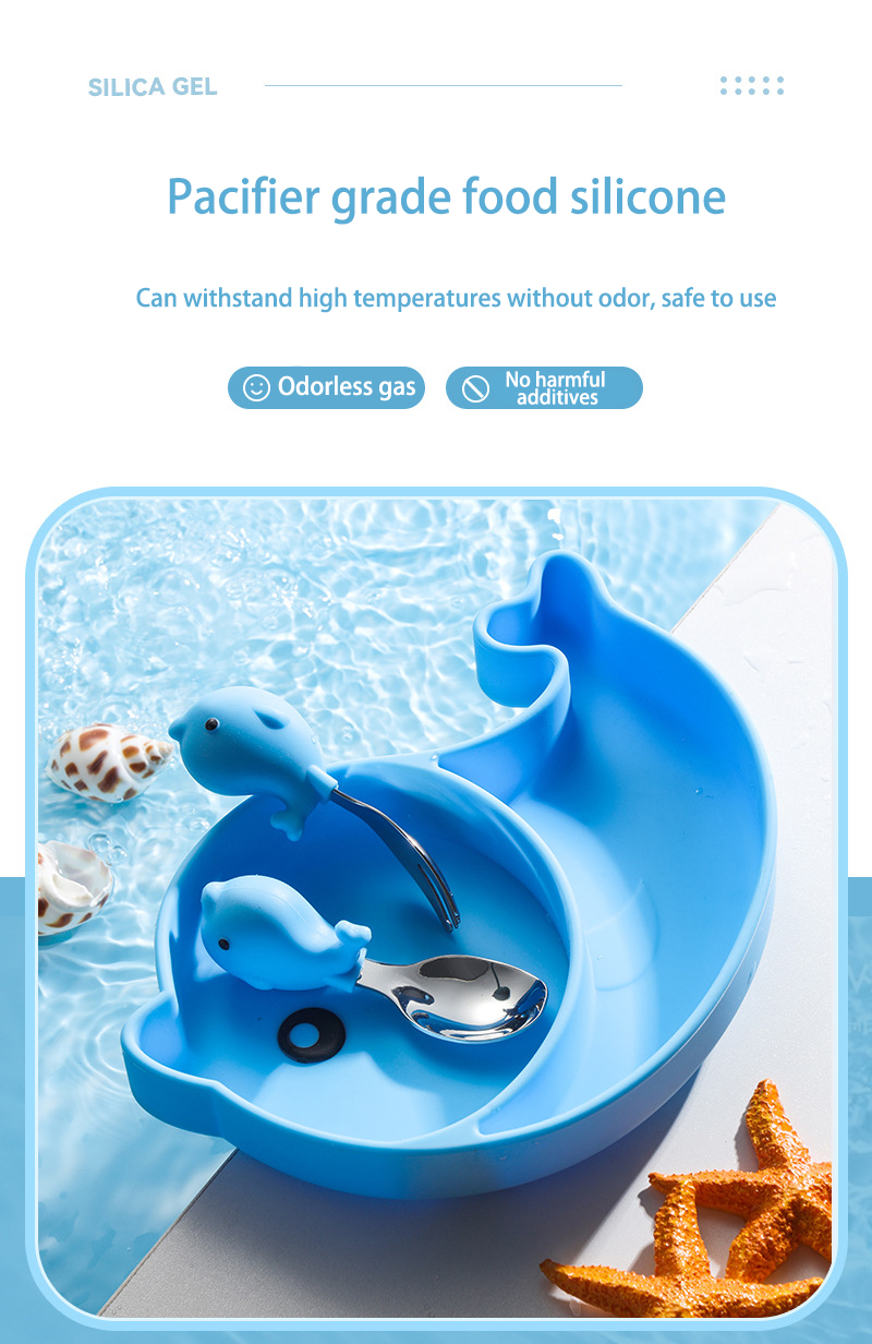 DINUO Dolphin Preschool Stainless Steel Silicone Food Plate and Tableware JYDN-L-227