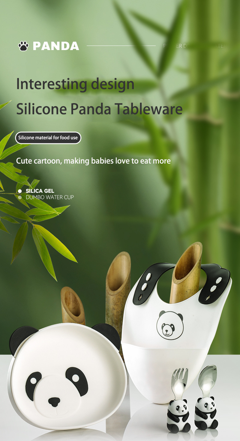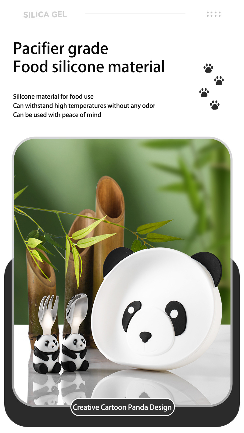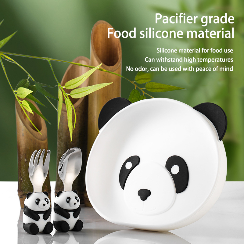 DINUO cartoon panda children silicone complementary food plate tableware JYDN-L-229