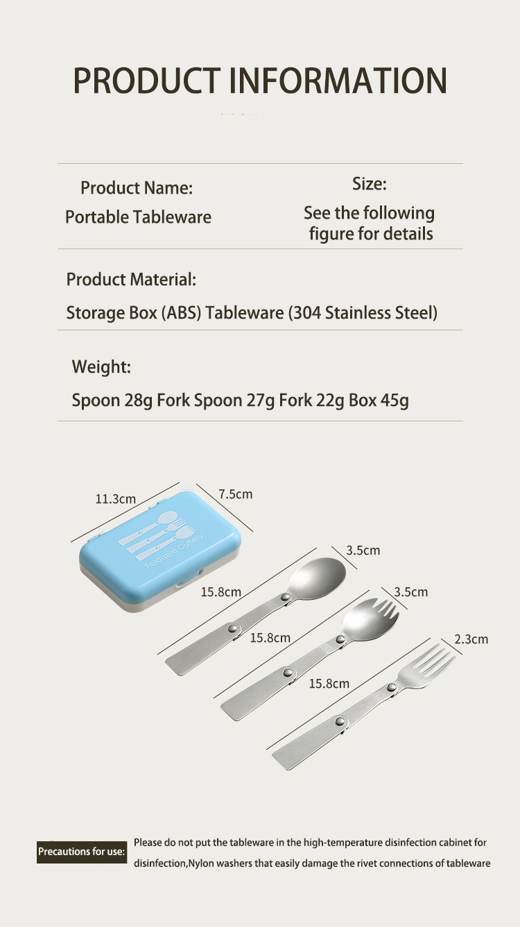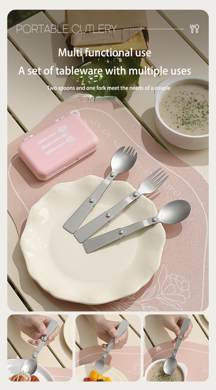 DINUO portable tableware 304 stainless steel titanium folding spoon fork set JYDN-L-241