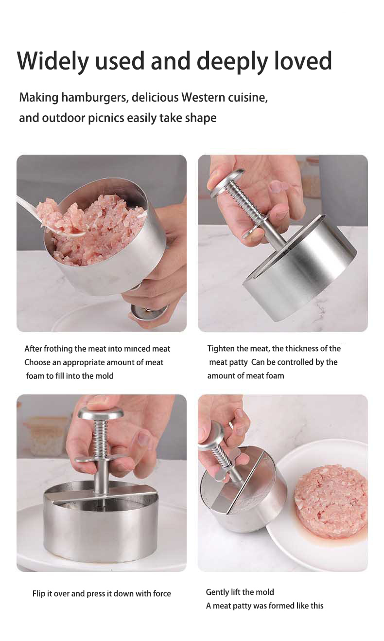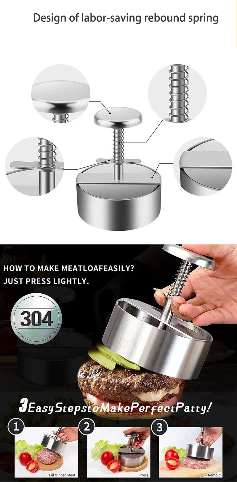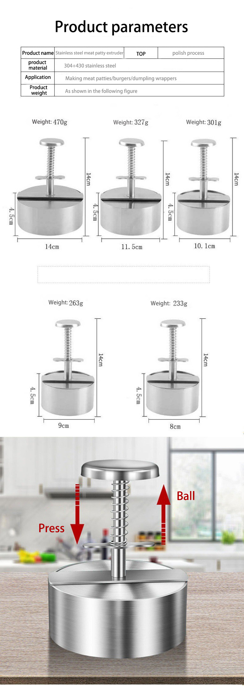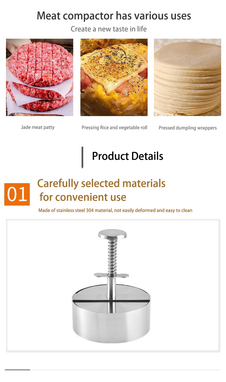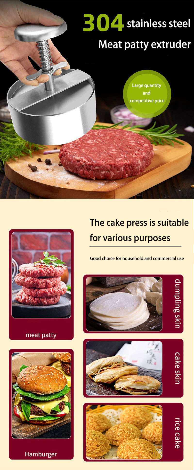 DINUO Burger Meat Pie Mold 304 Stainless Steel Meat Presser Round JYDN-L-253