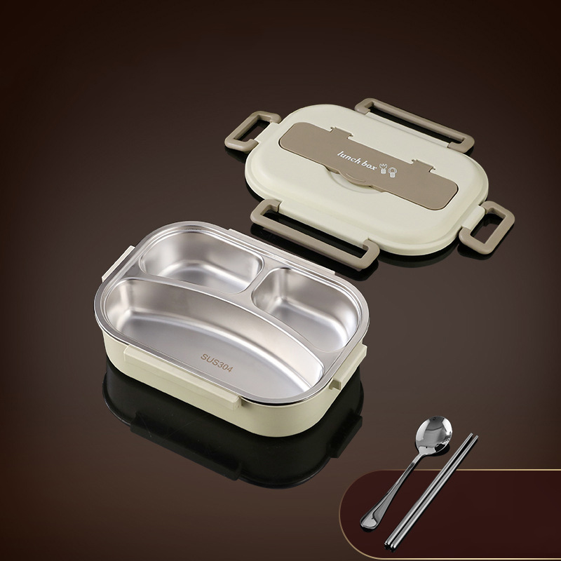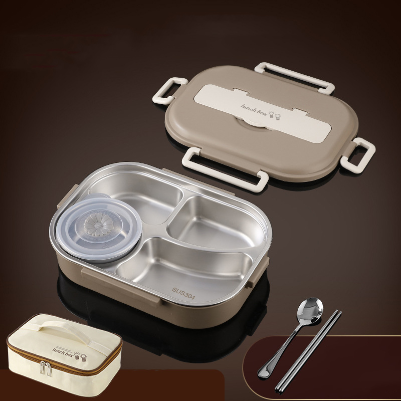 Beige three-grid 1000ml (table with tableware + insulation bag) $12