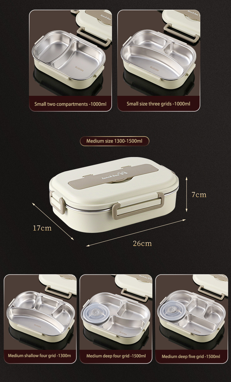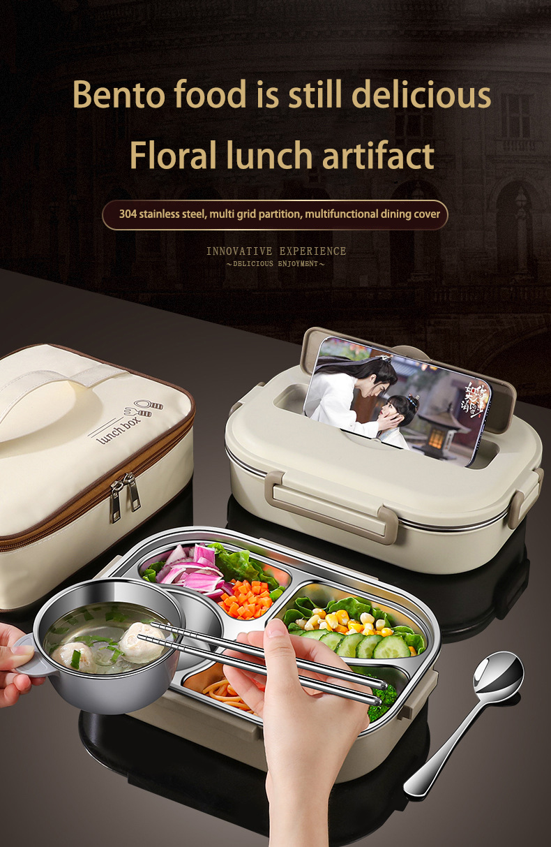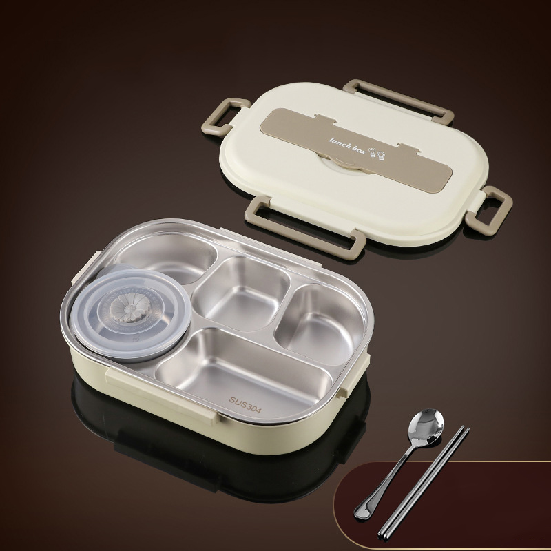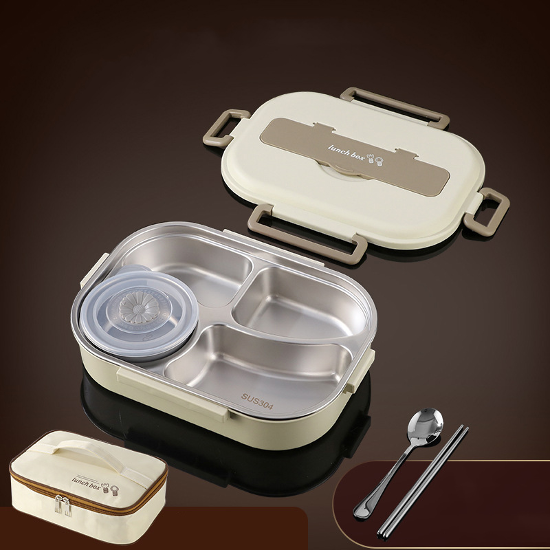 Beige four-grid 1500ml (with tableware + soup bowl + insulation bag) $15