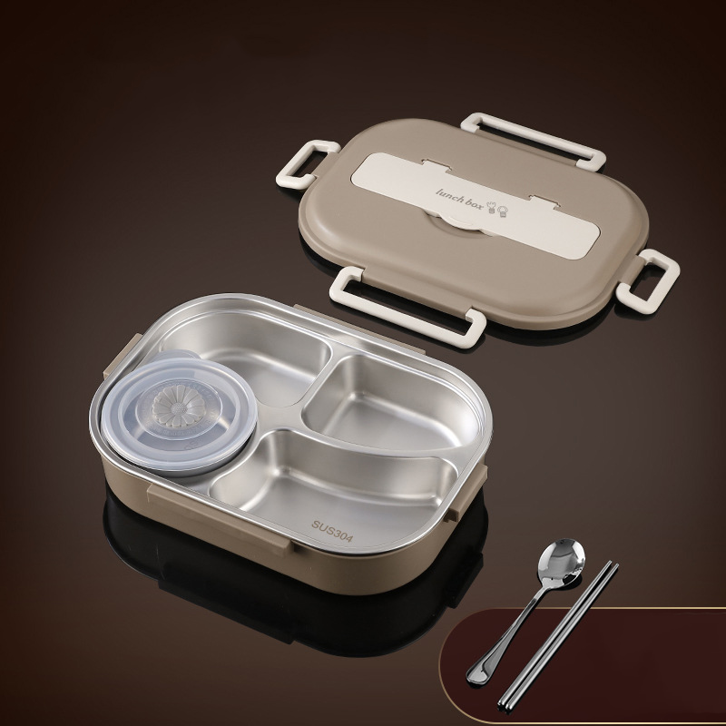 Brown three-grid 1000ml (with tableware + insulation bag) $12