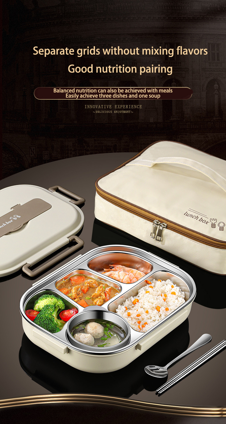 Beige five-grid 1500ml (table with tableware + soup bowl + insulation bag) $15