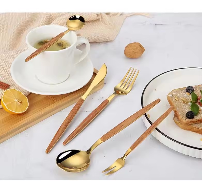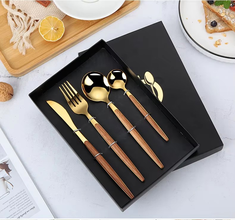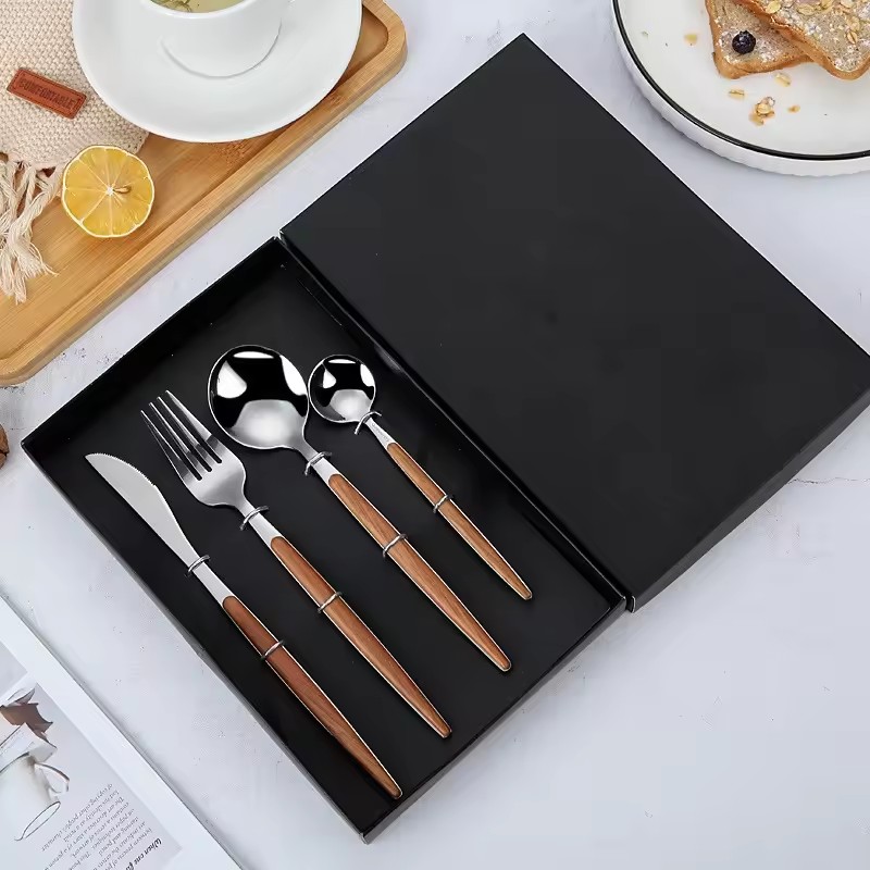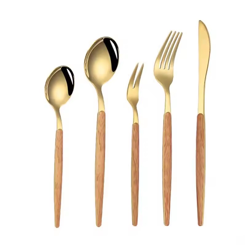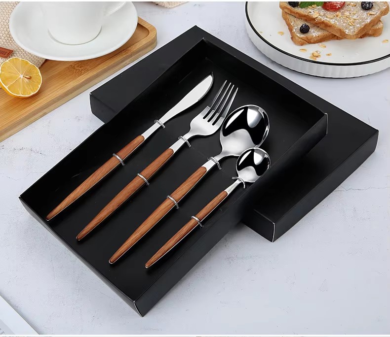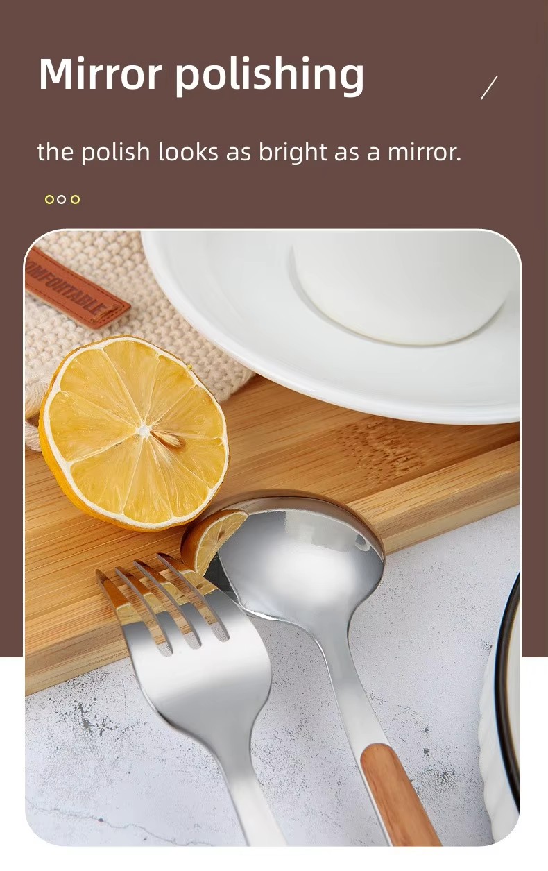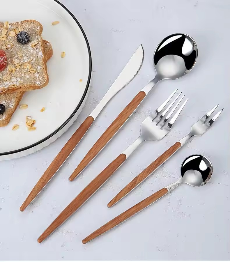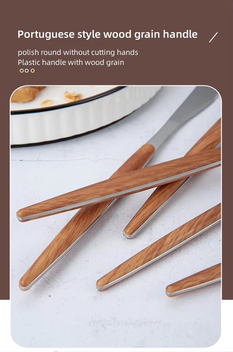 DINUO stainless steel cutlery set, fork spoon knife set, wood plastic handle JYDN-L-022