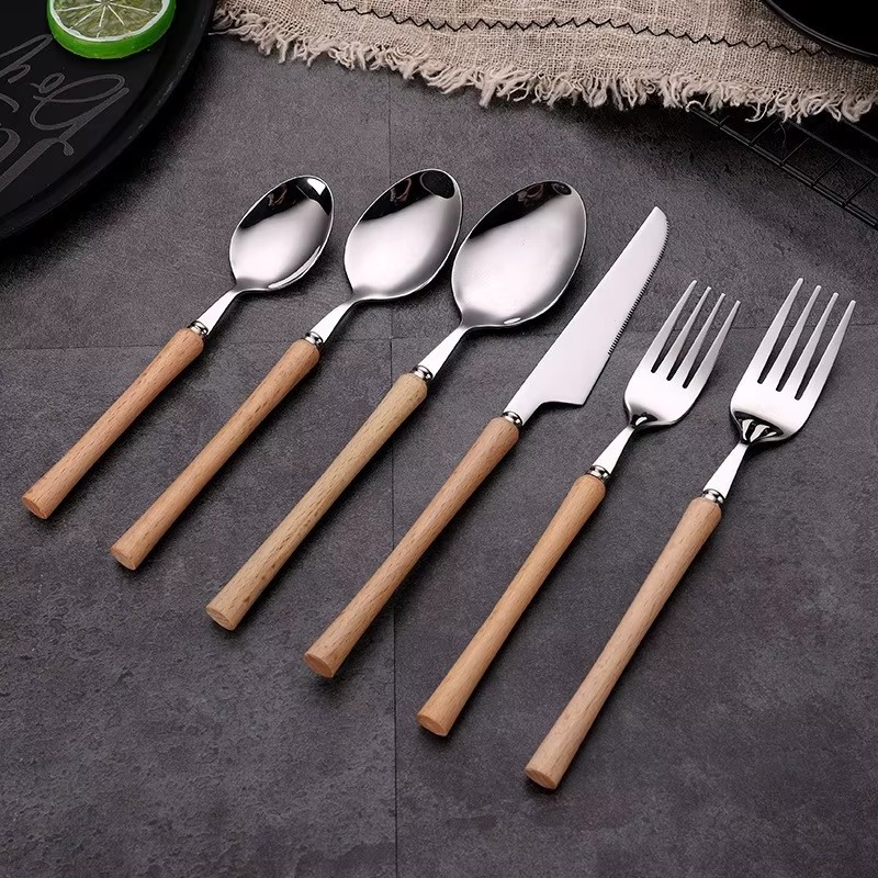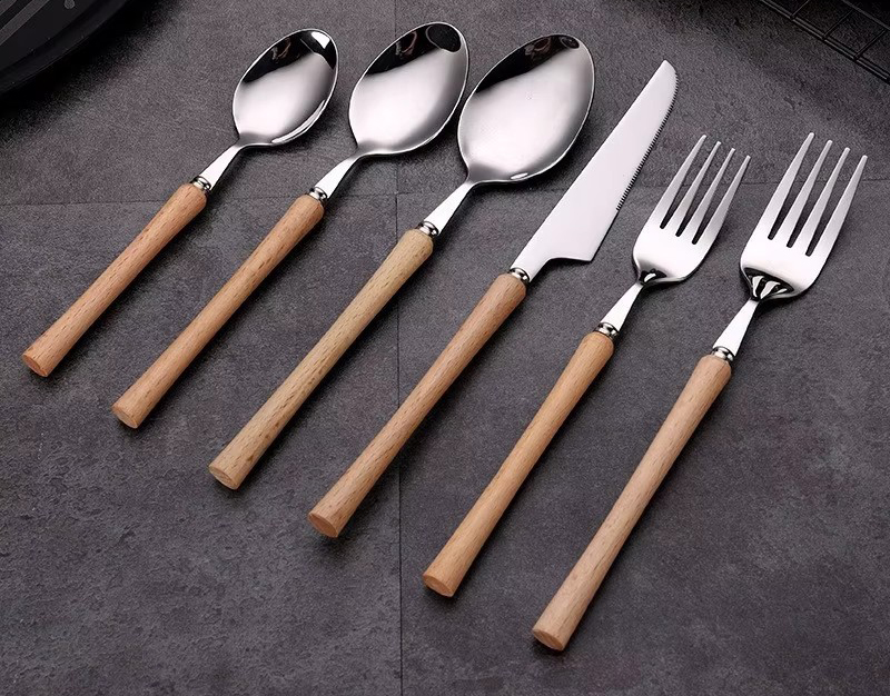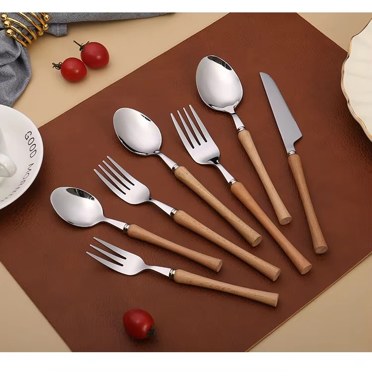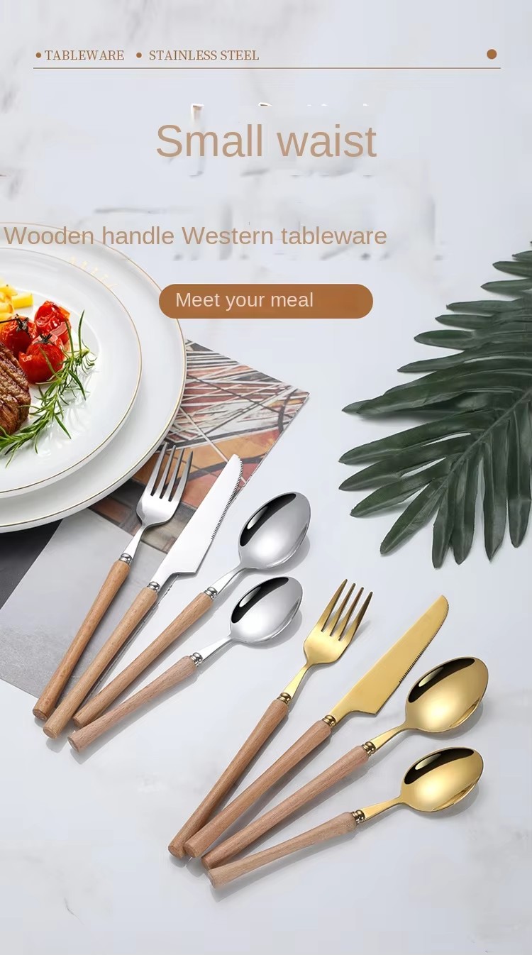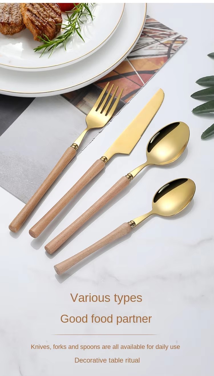 DINUO wooden handle stainless steel knife, fork, spoon set Western tableware set JYDN-L-025