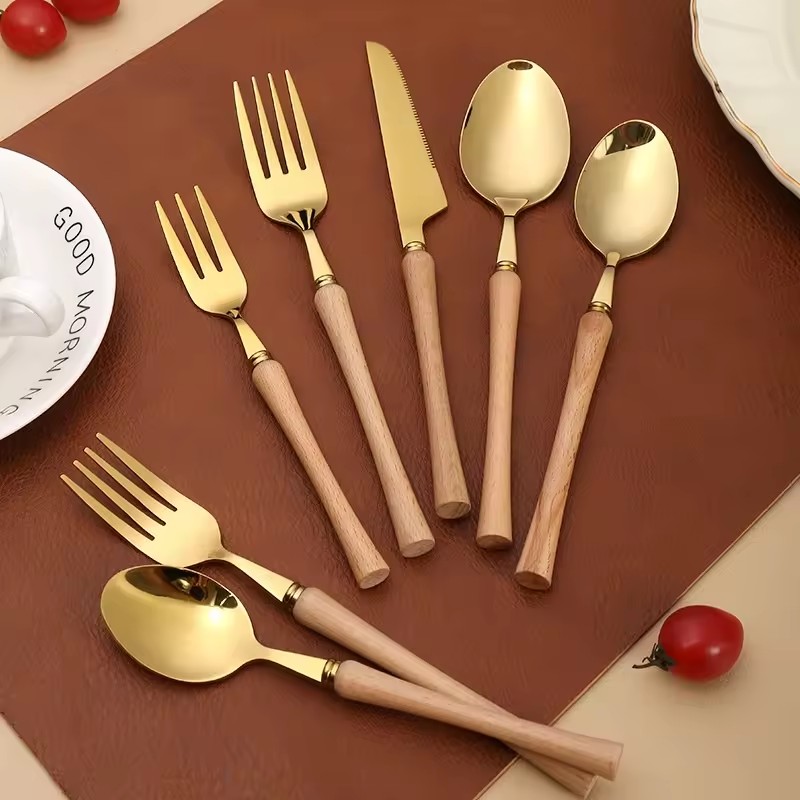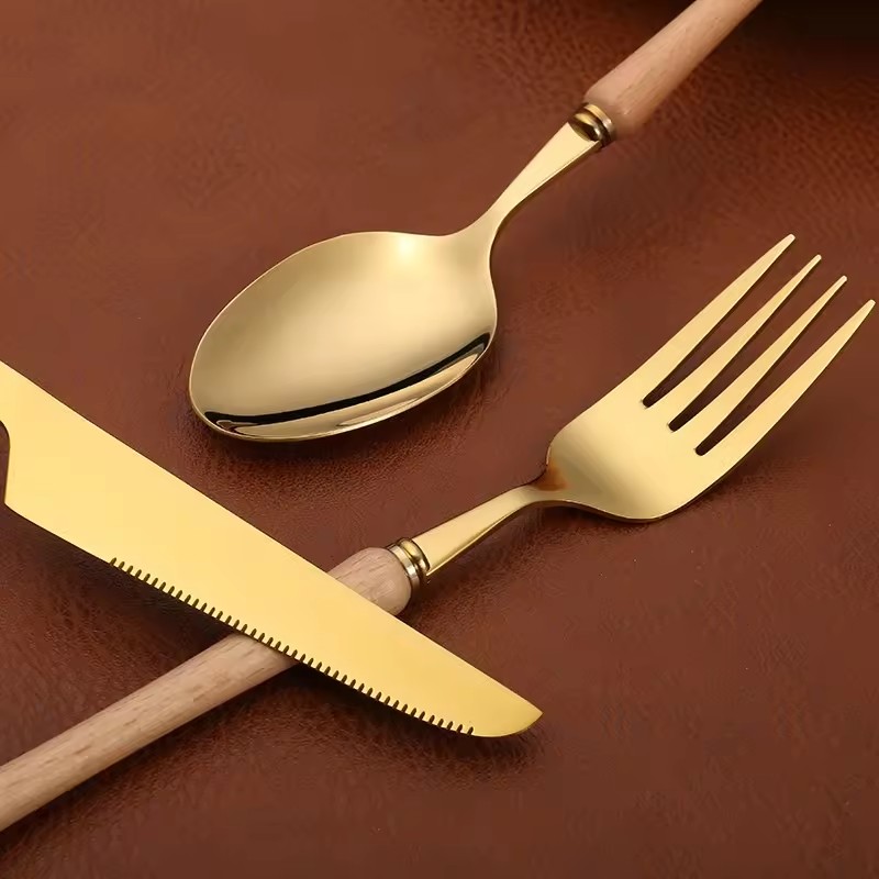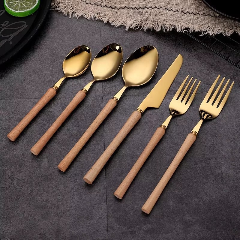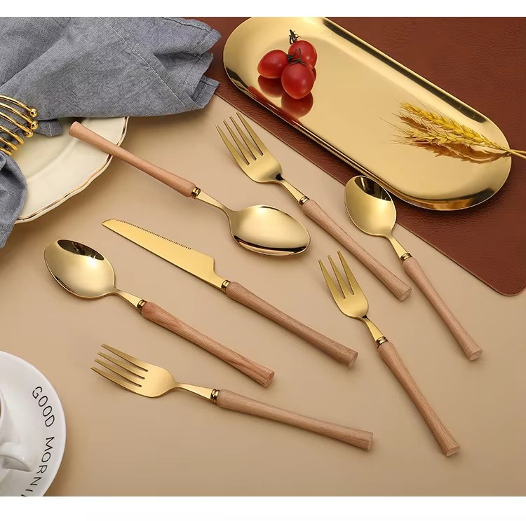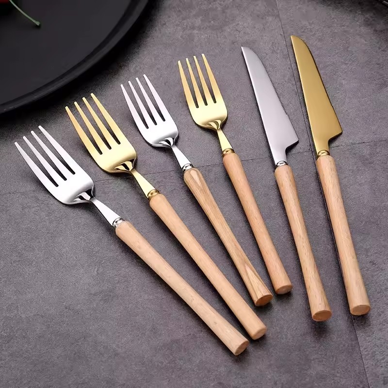 DINUO wooden handle stainless steel knife, fork, spoon set Western tableware set JYDN-L-025