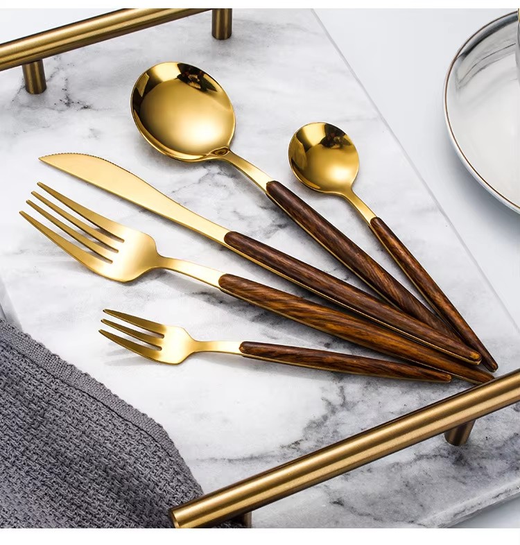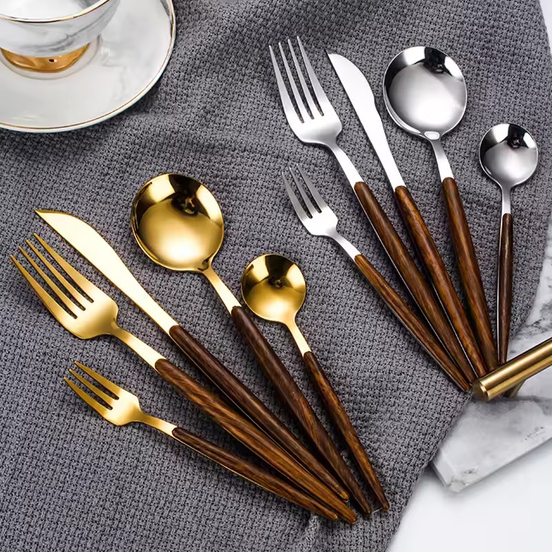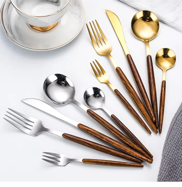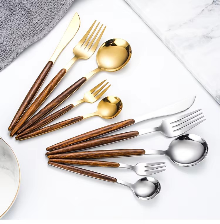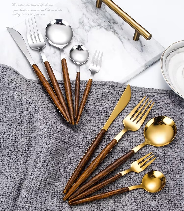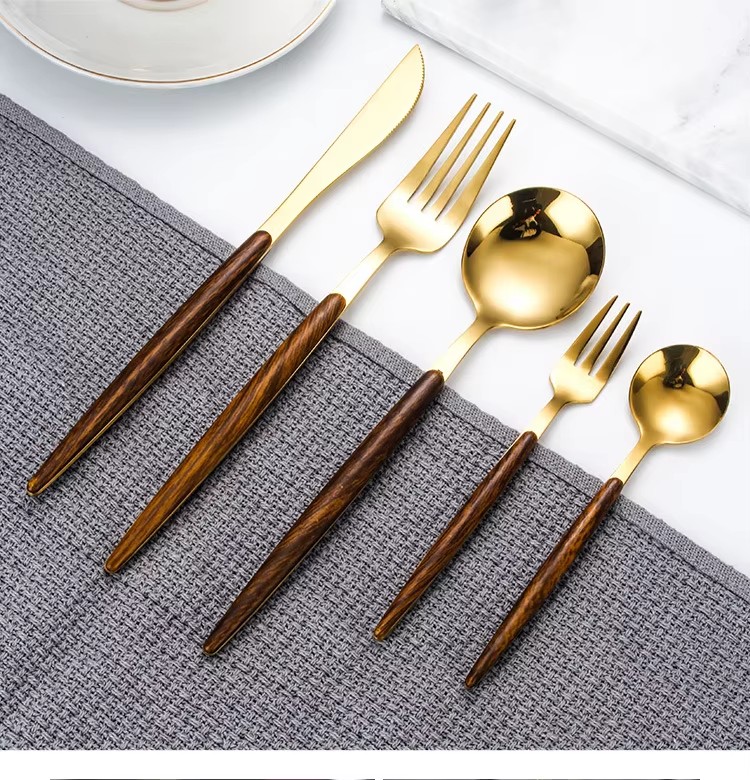 DINUO Stainless Steel Wooden Handle Tableware Knife Fork Spoon Western Tableware Set JYDN-L-027