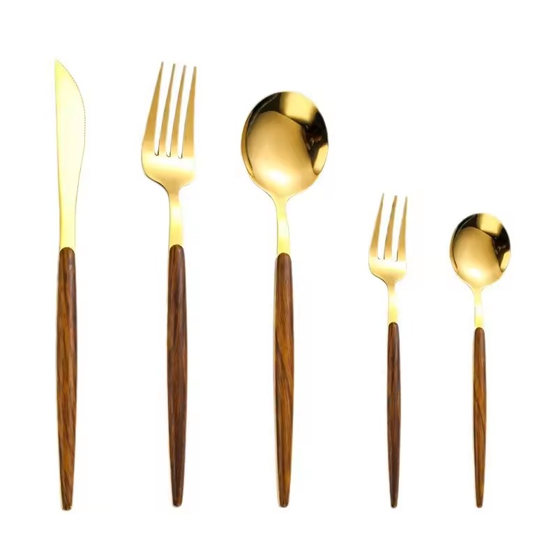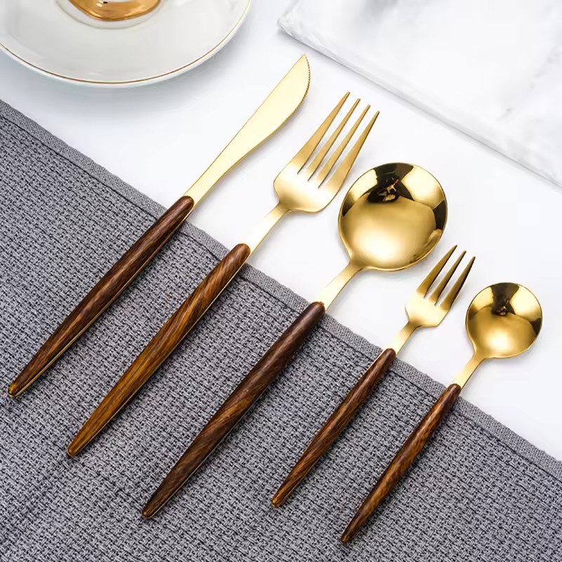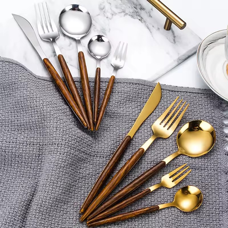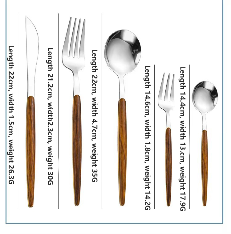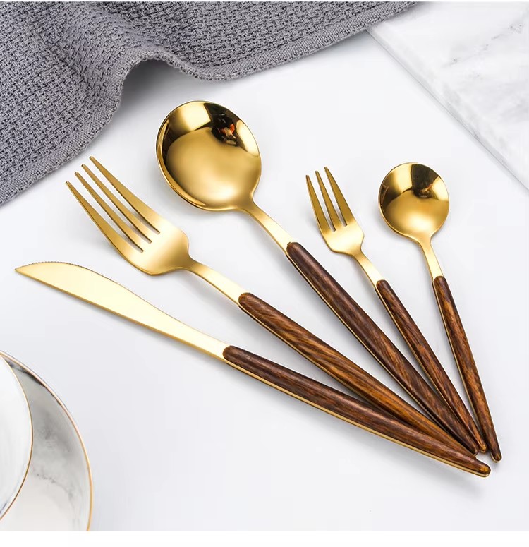 DINUO Stainless Steel Wooden Handle Tableware Knife Fork Spoon Western Tableware Set JYDN-L-027