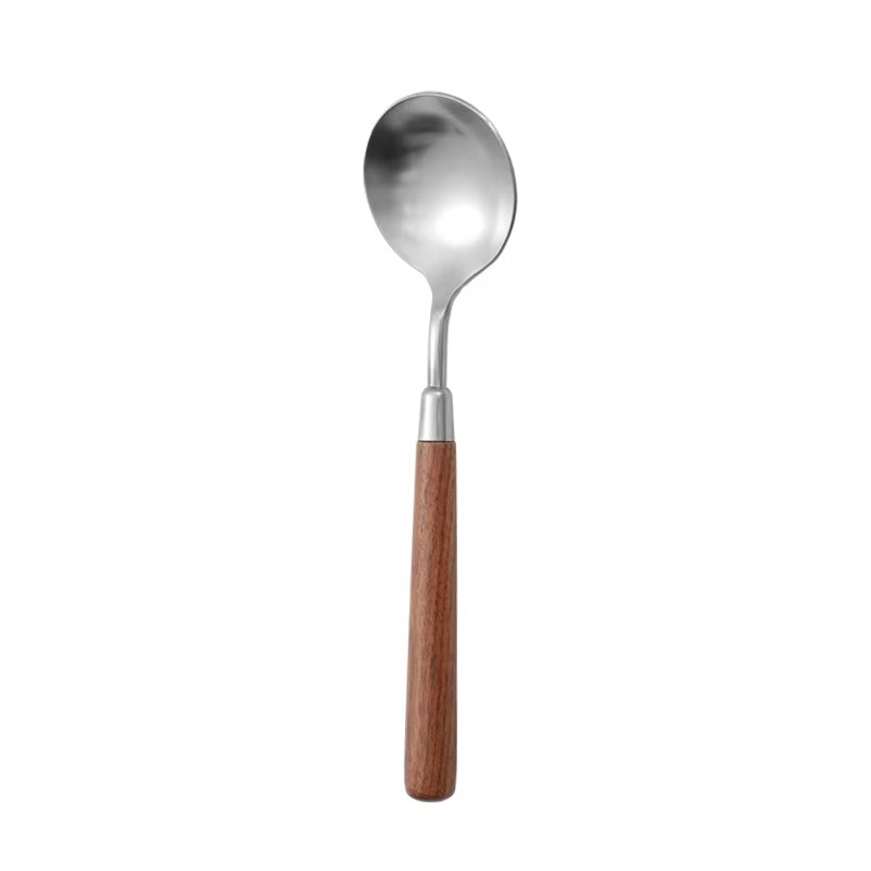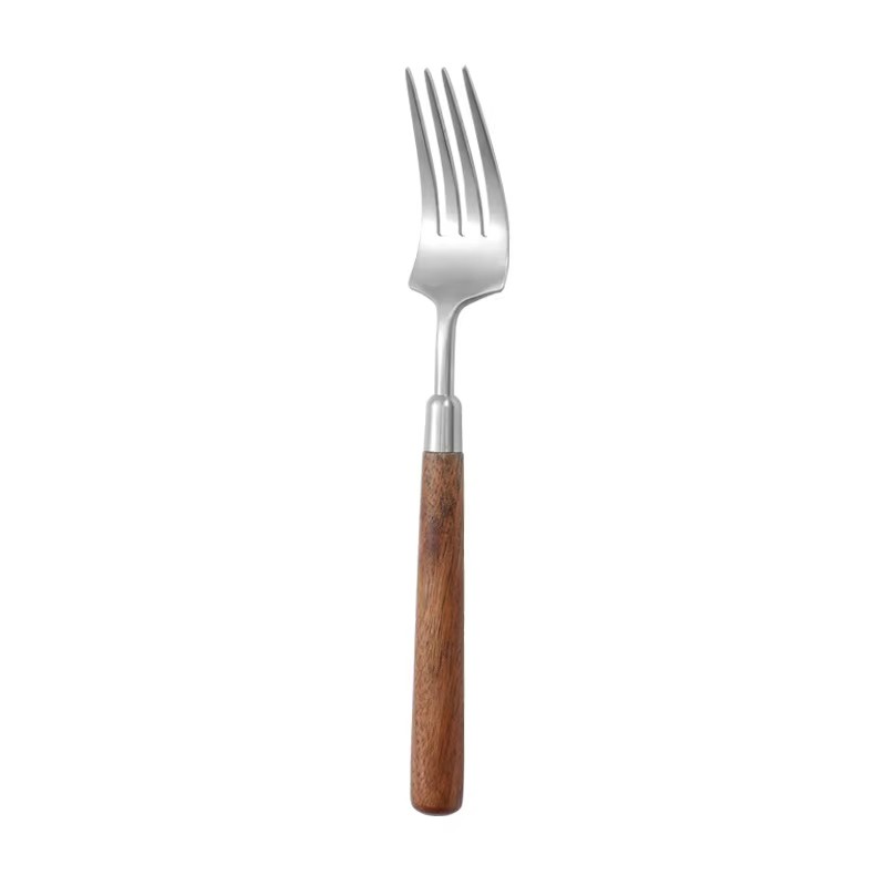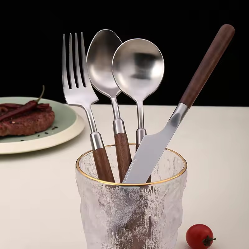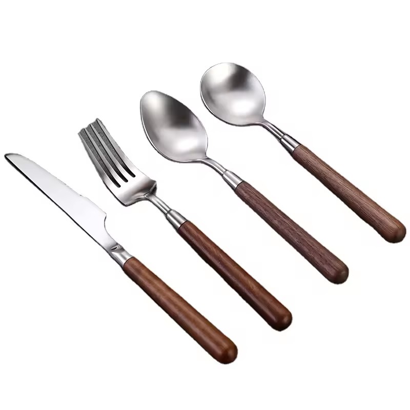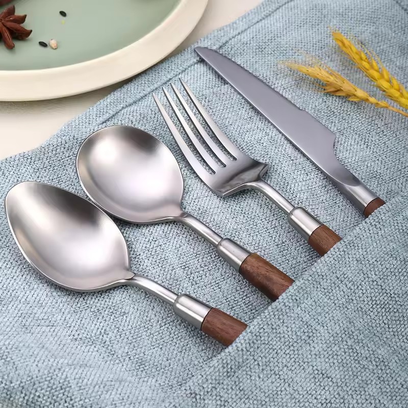 DINUO wooden handle metal high-quality matte western tableware knife, fork, spoon silver JYDN-L-031