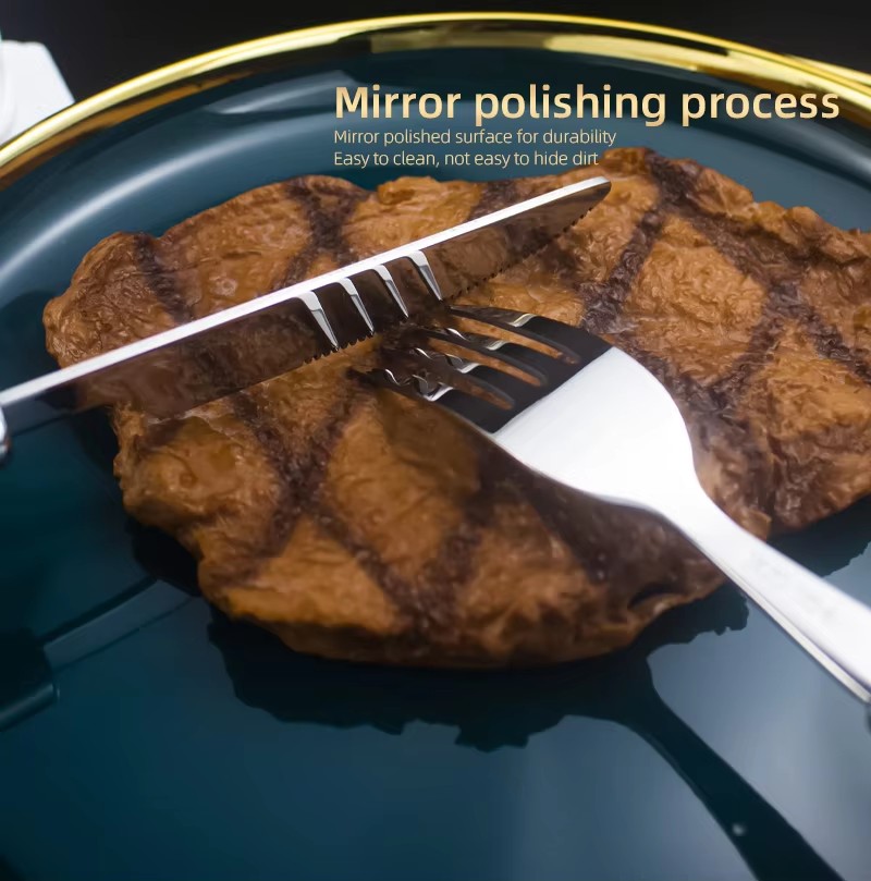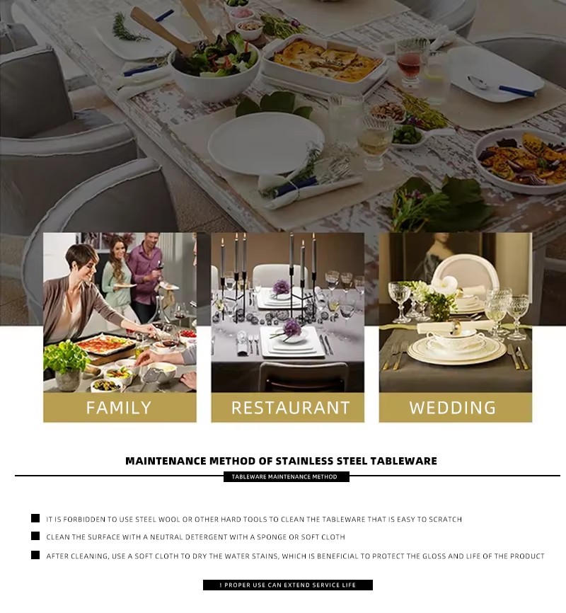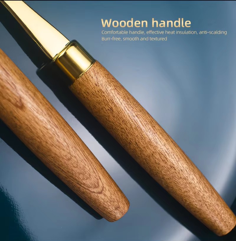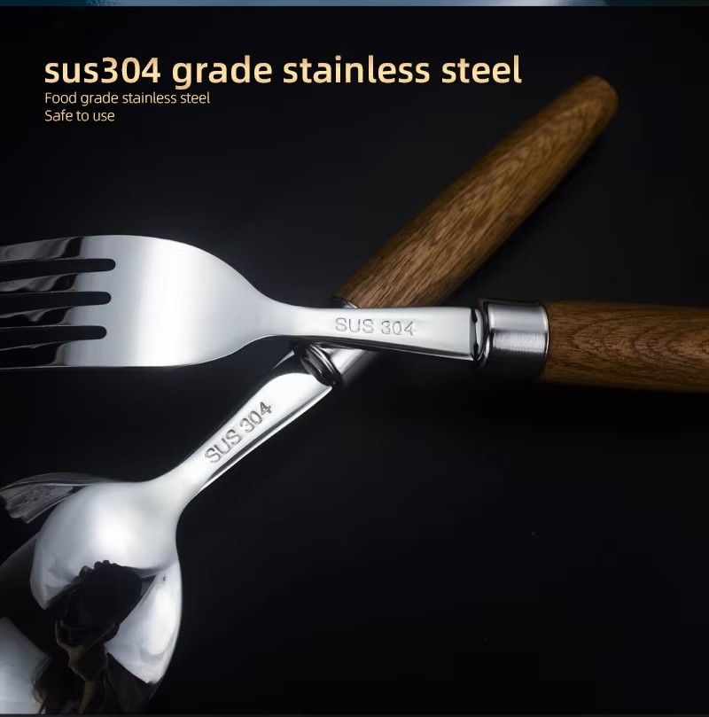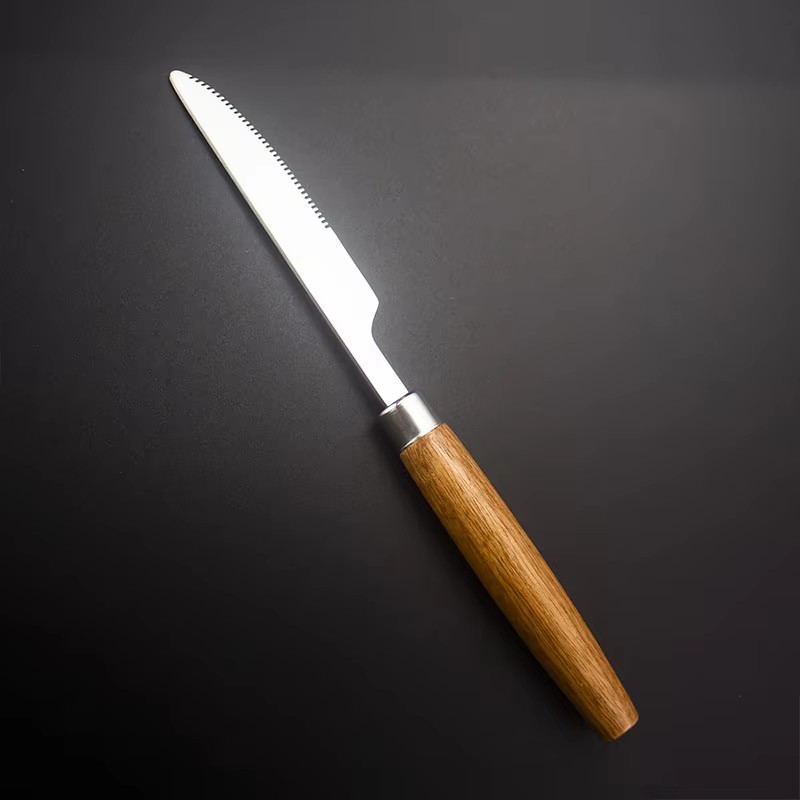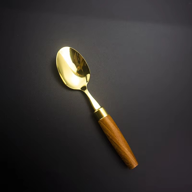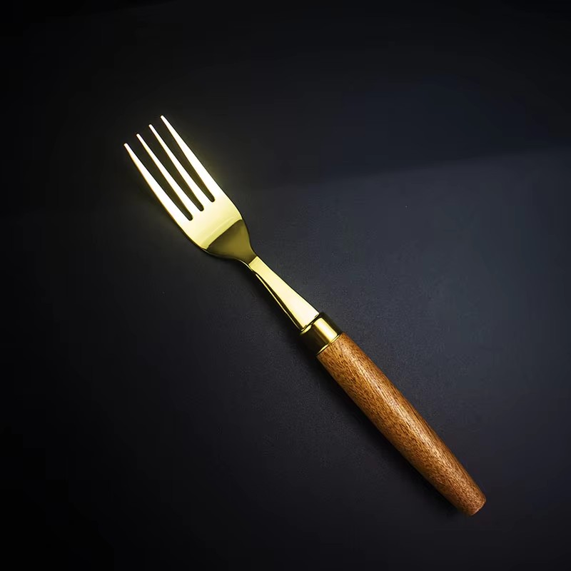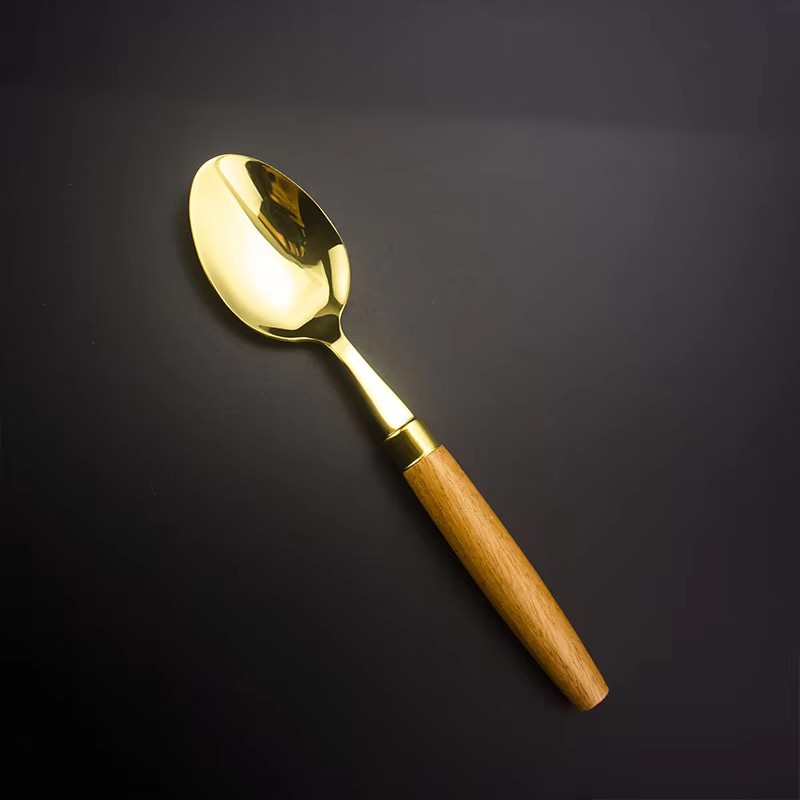 DINUOEco-friendly Wooden Handle Stainless Steel Cutlery Silver Gold Flatware SetJYDN-L-033