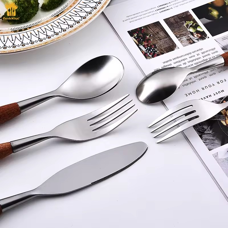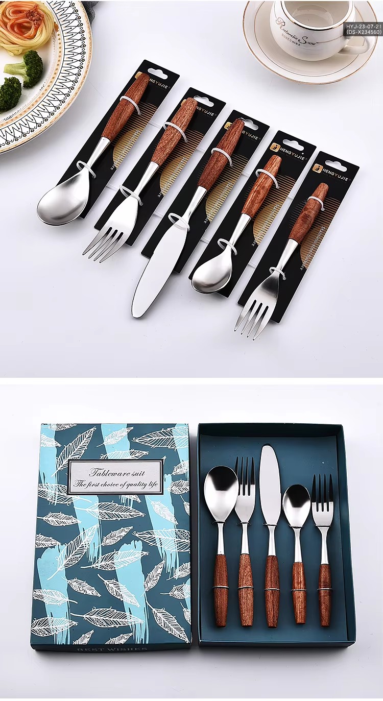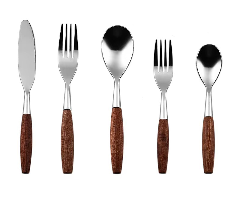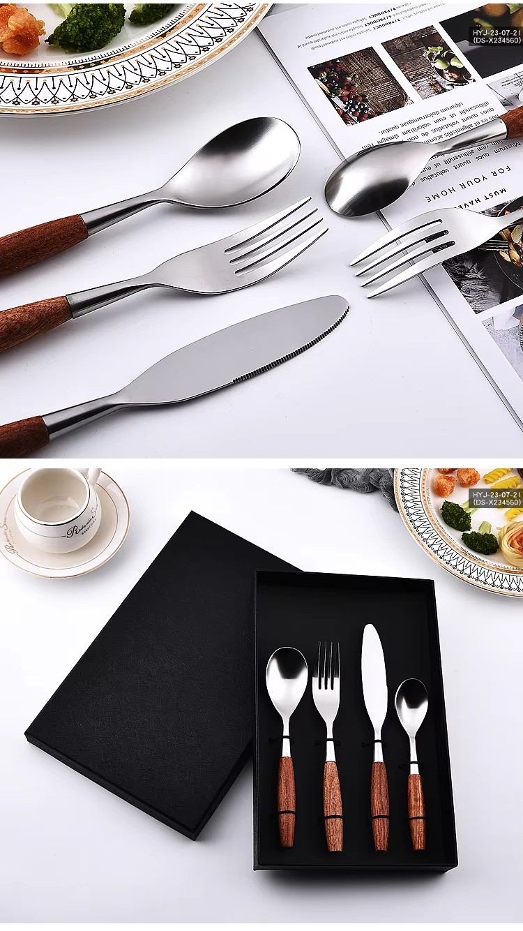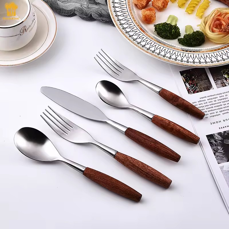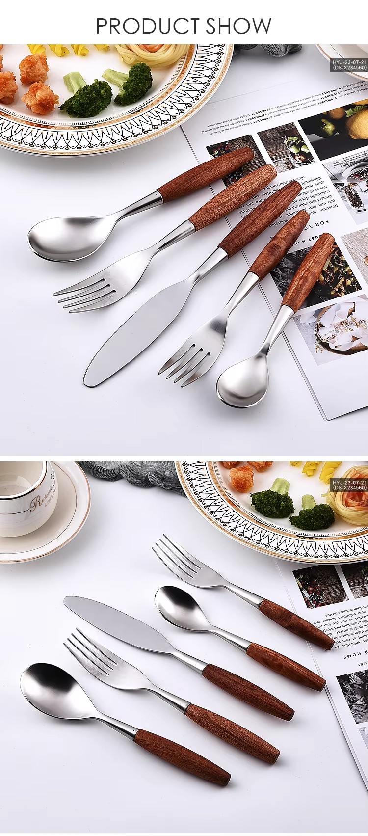 DINUO high-end wooden handle stainless steel silverware knife, fork, spoon set JYDN-L-038