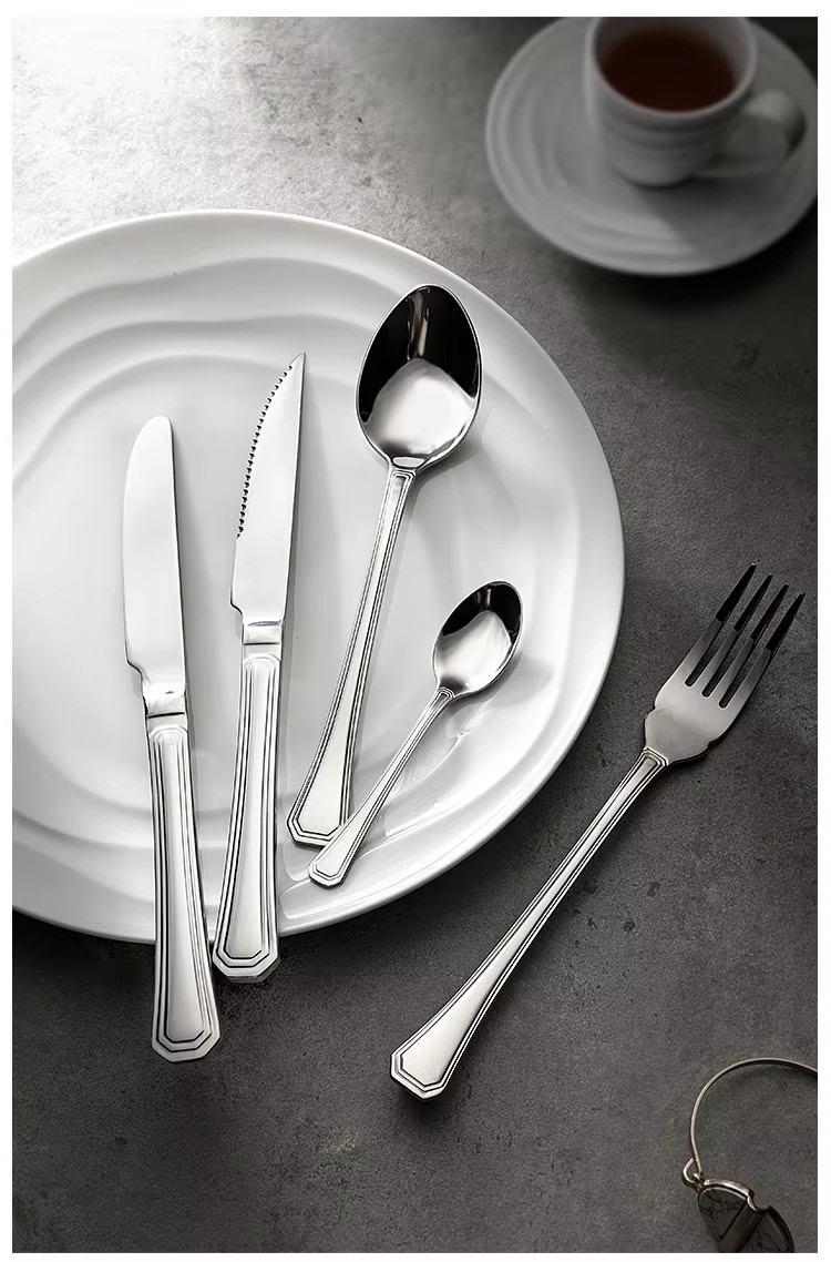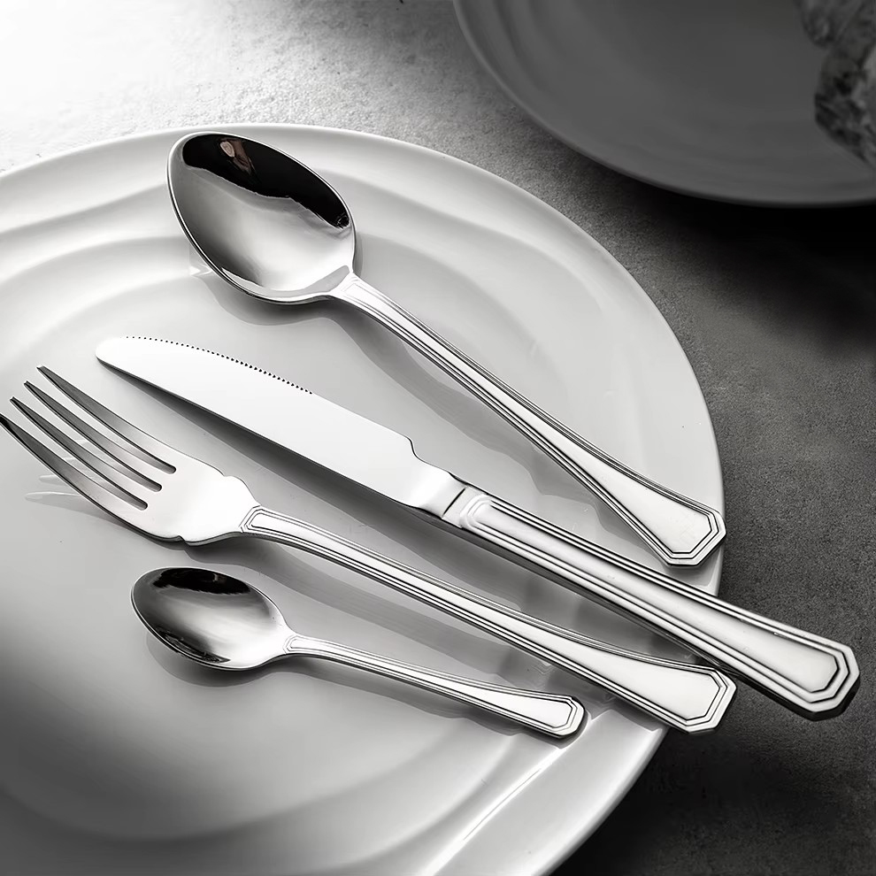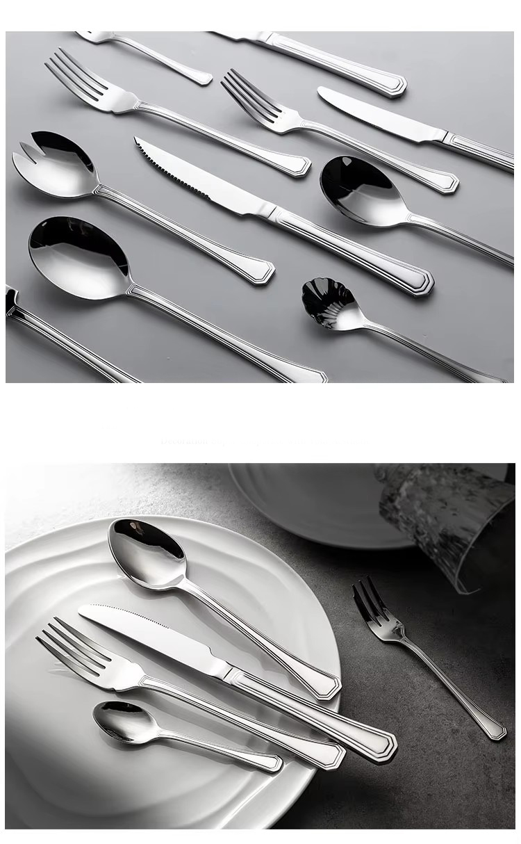 DINUO hotel restaurant carved stainless steel silver tableware set satin tableware set JYDNUO-L-052