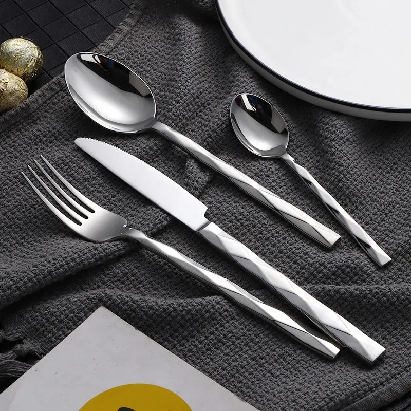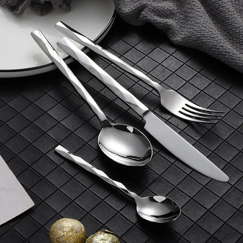 DINUO Luxury Style Stainless Steel Tableware Set Diamond shaped Handle JYDN-L-054