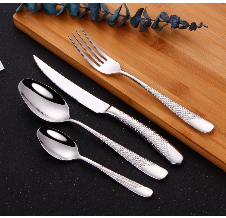 DINUO Stainless Steel Hammer Pattern Handle Tableware Set Restaurant Hotel JYDN-L-059
