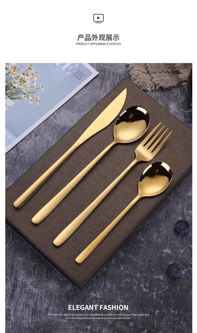 DINUO Gold Silver Luxury Tableware Stainless Steel Knife Spoon Fork Set JYDN-L-066