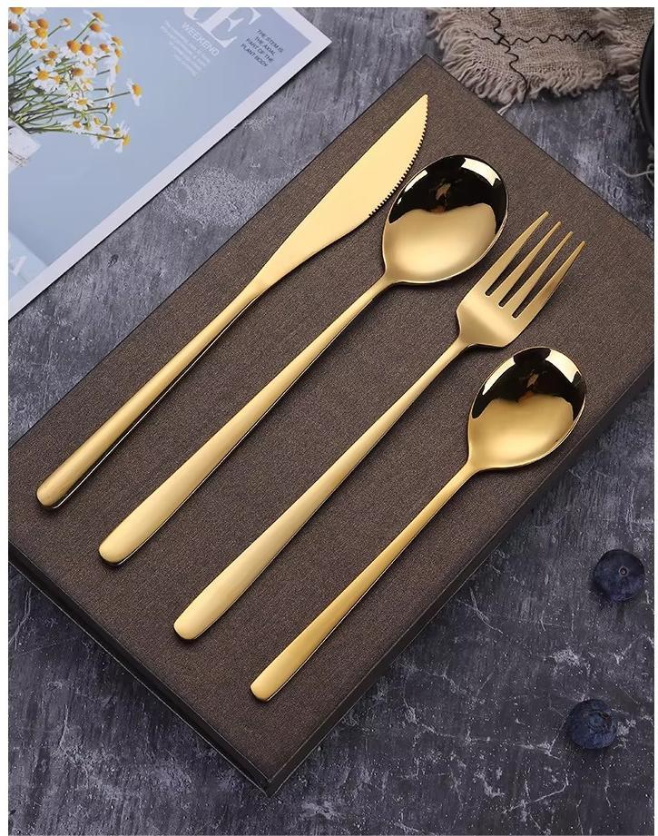 DINUO luxury tableware stainless steel knife spoon fork set wedding gold tableware JYDN-L-073