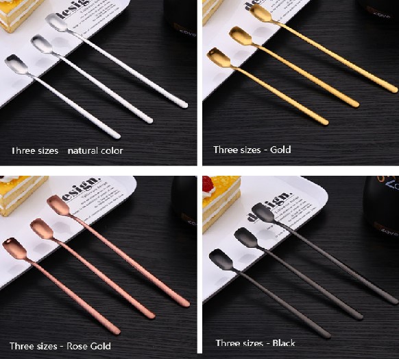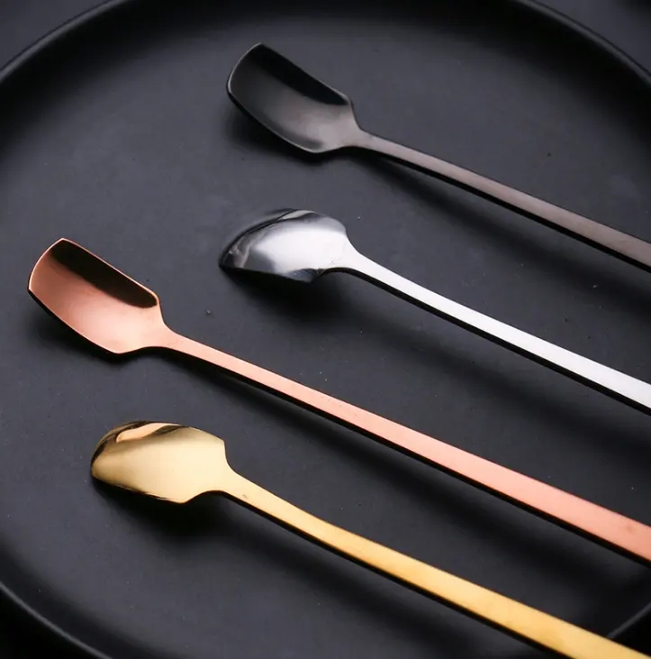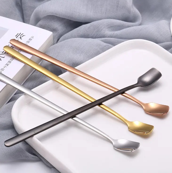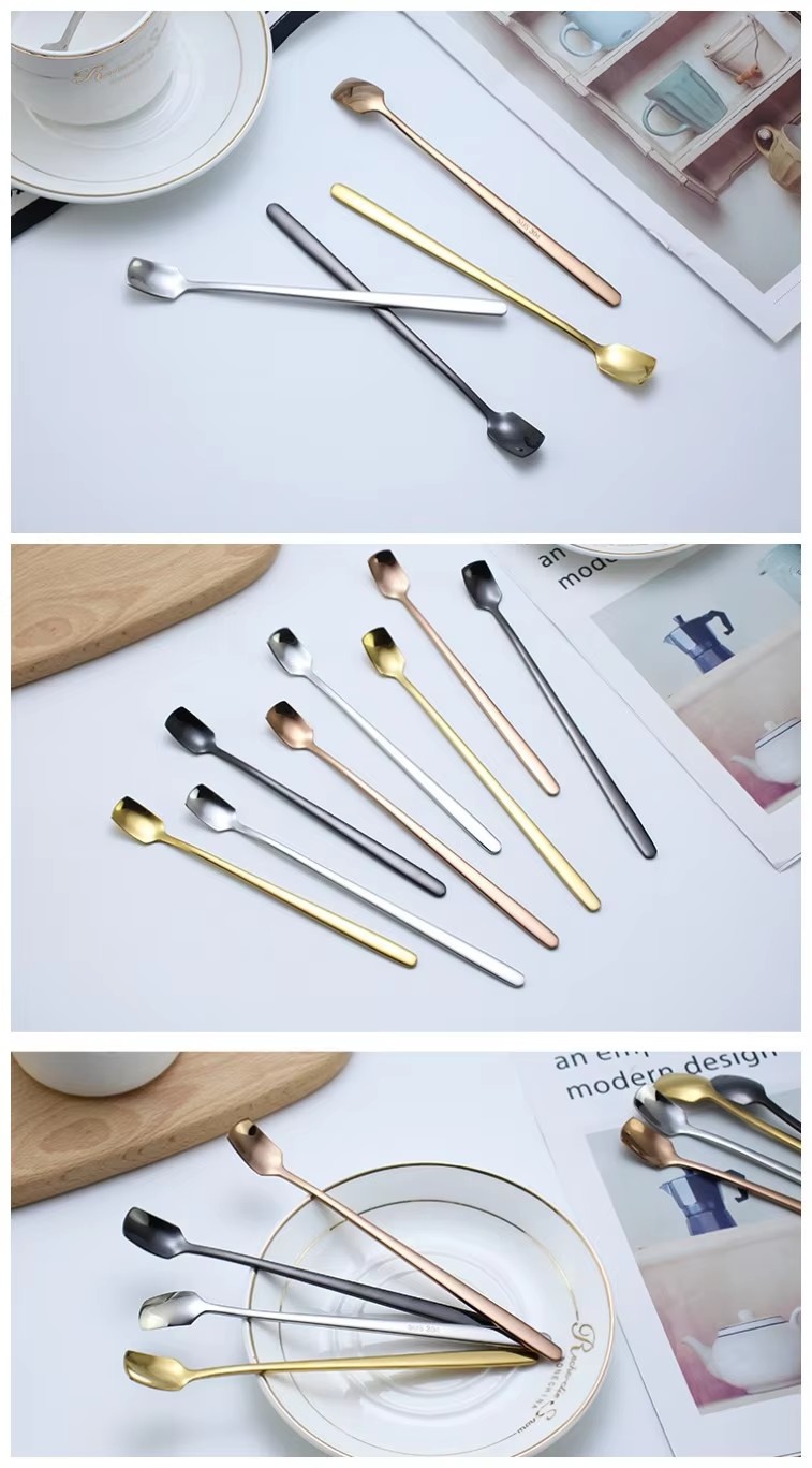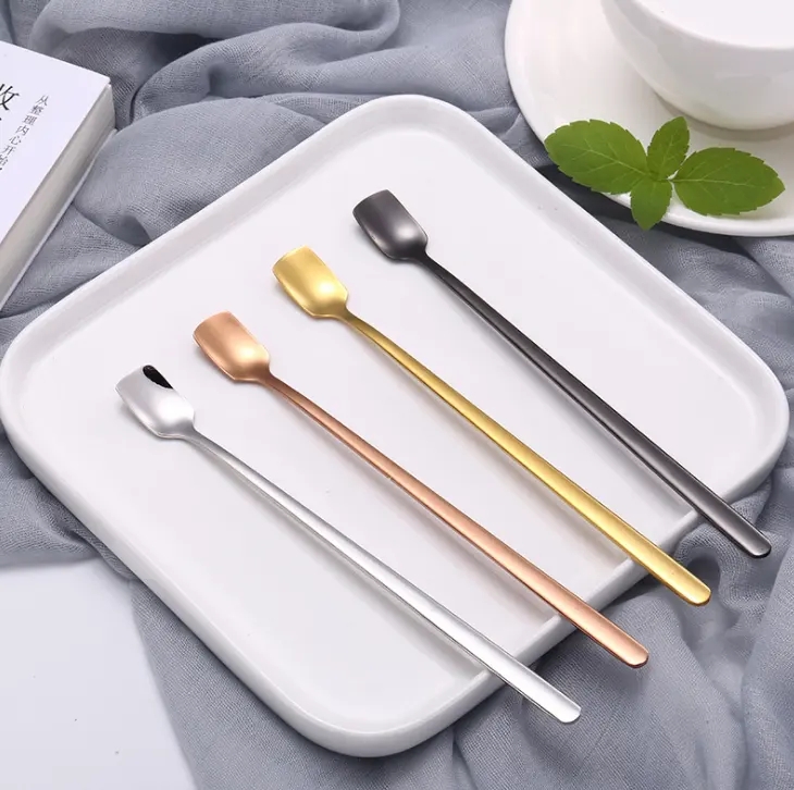 DINUO square long handled stainless steel tea dessert coffee mixing spoon JYDN-L-077