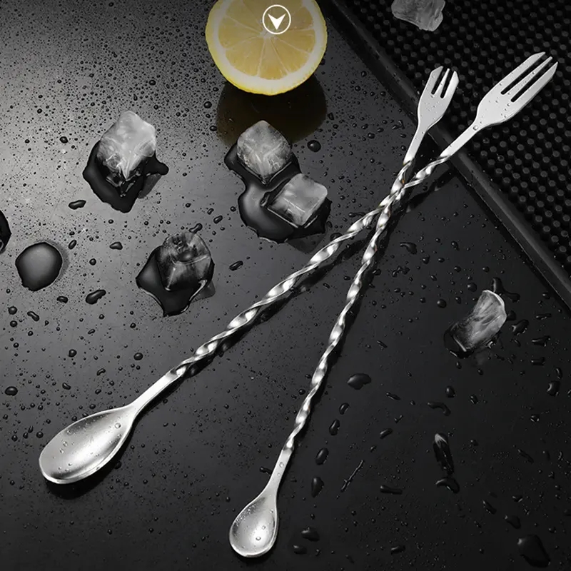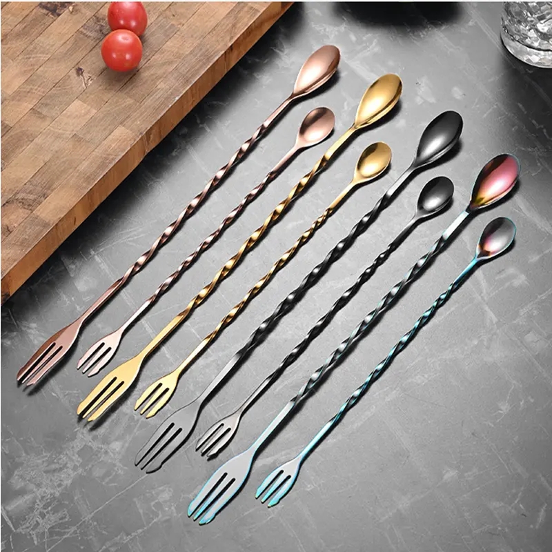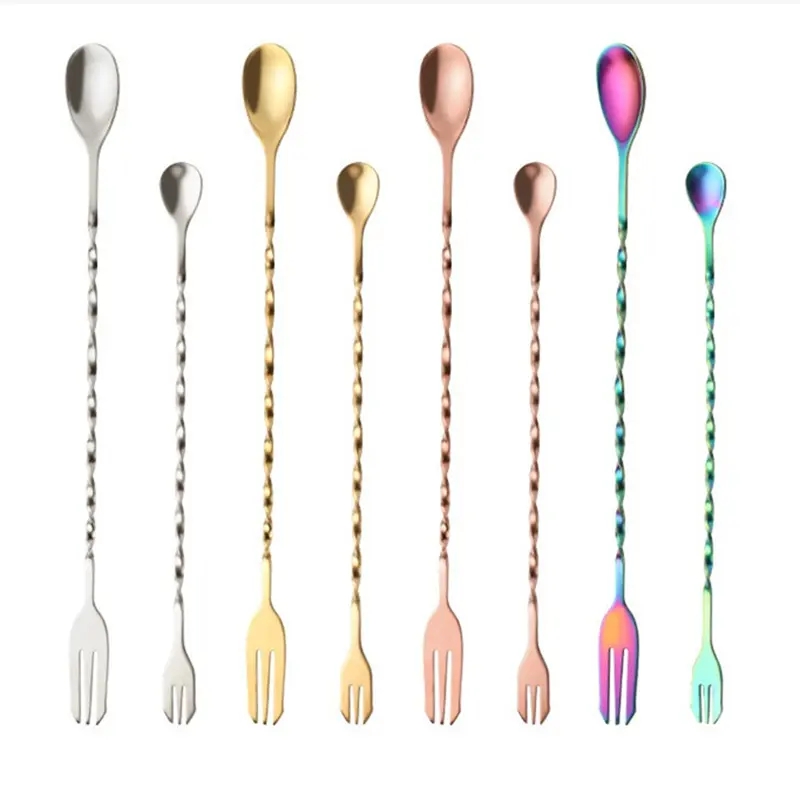 DINUO Stainless Steel Spiral Long Handle Double Headed Bar Food Coffee Milk Tea Stir JYDN-L-079