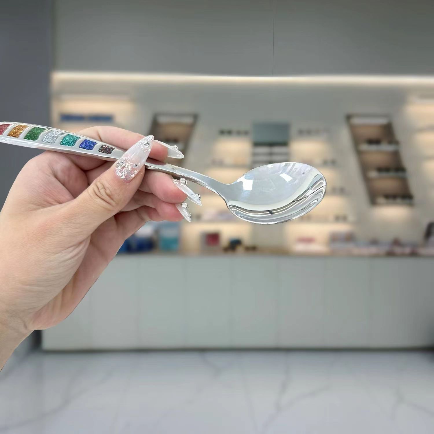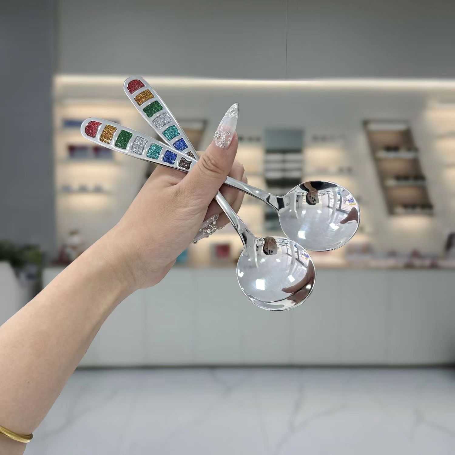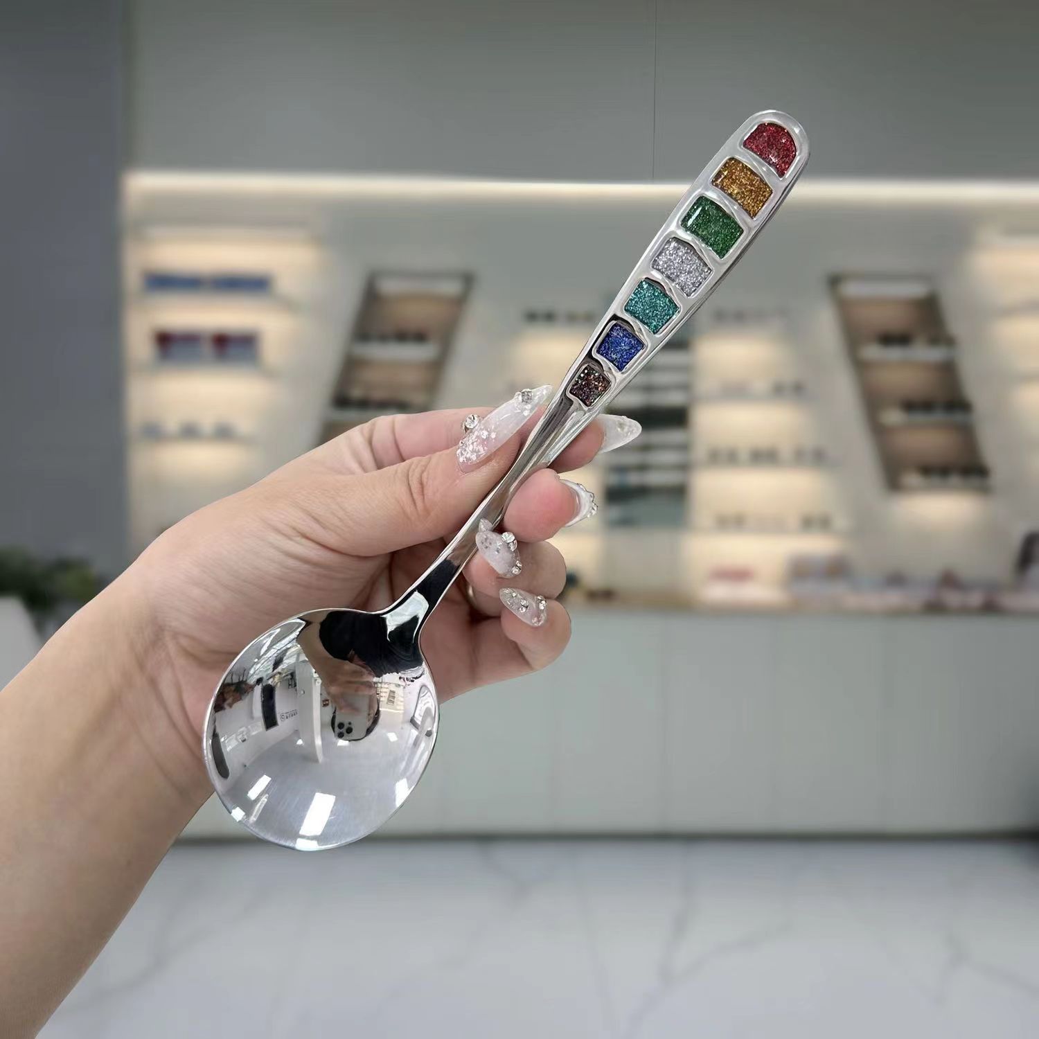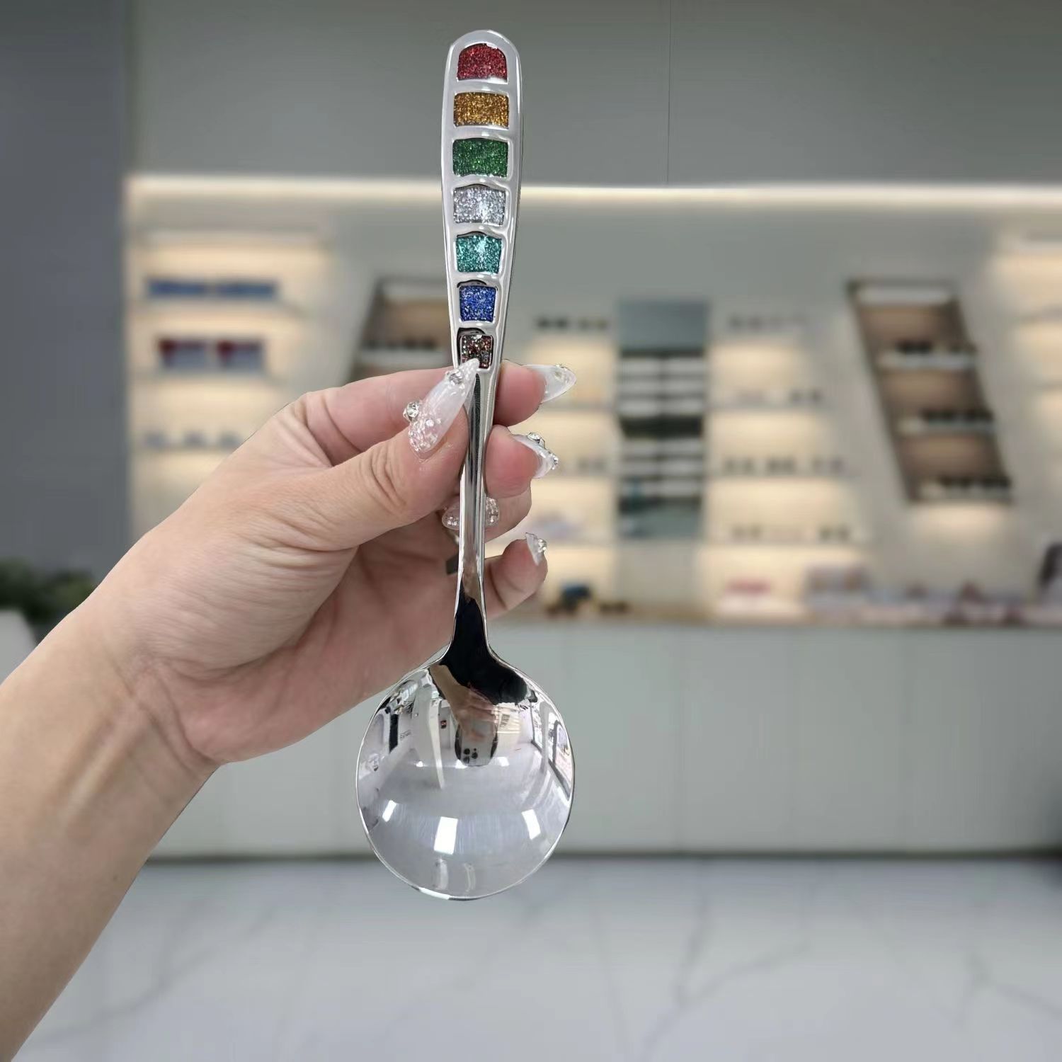 DINUO Stainless Steel Spoon Colorful Enamel European Spoon Western Food Spoon JYDN-L-083