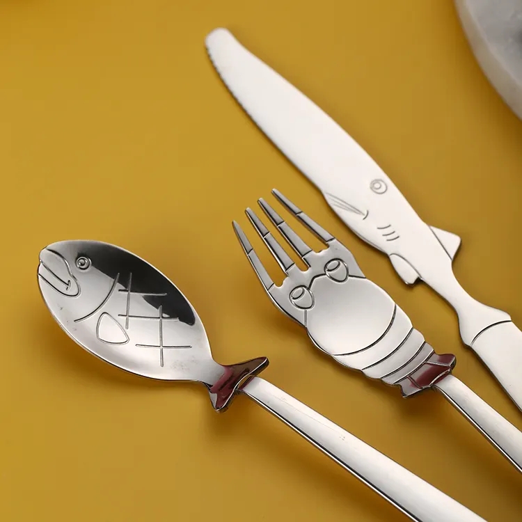 DINUO stainless steel eight treasure animal shark shaped children's tableware JYDN-L-086