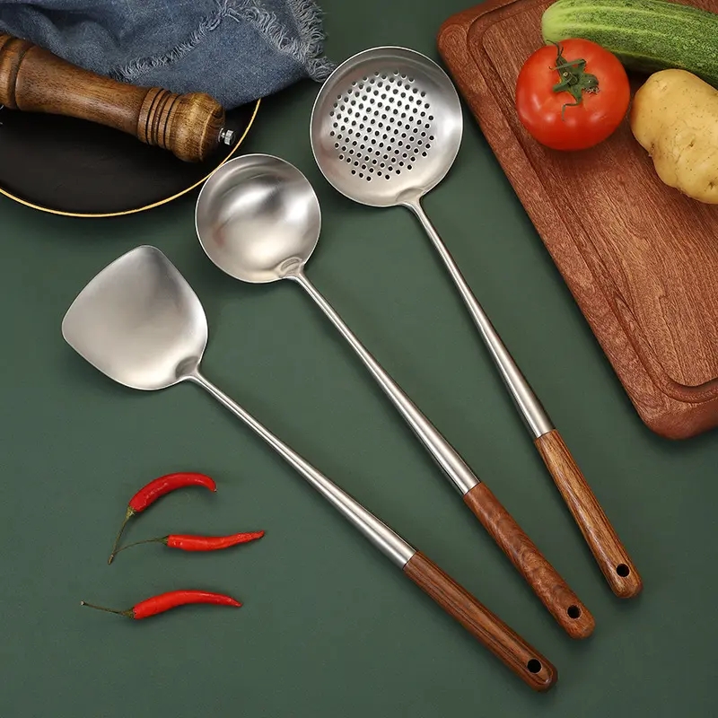 DINUO Titanium Kitchen Cooking Set Wooden Handle Cooking Utensils, spatula, filter pan JYDN-L-133