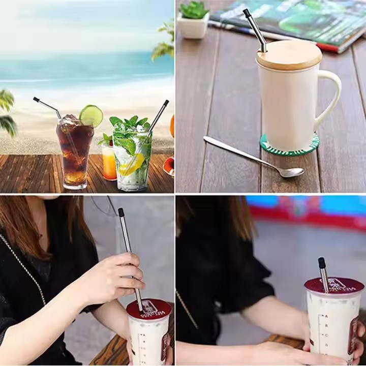 DINUO Metal Stainless Steel 304 Portable Foldable Straw with Cleaning Brush Plastic Box JYDN-L-186