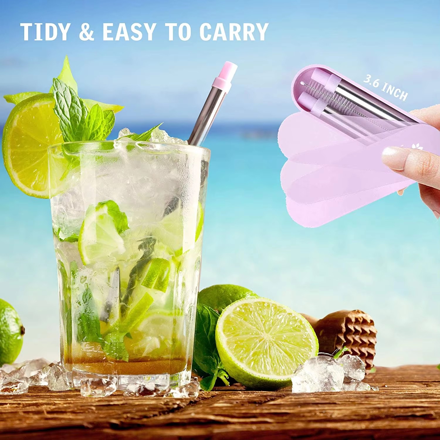 DINUO Reusable Foldable Eco friendly Silicone Straw with Cleaning Brush Plastic Box JYDN-L-187