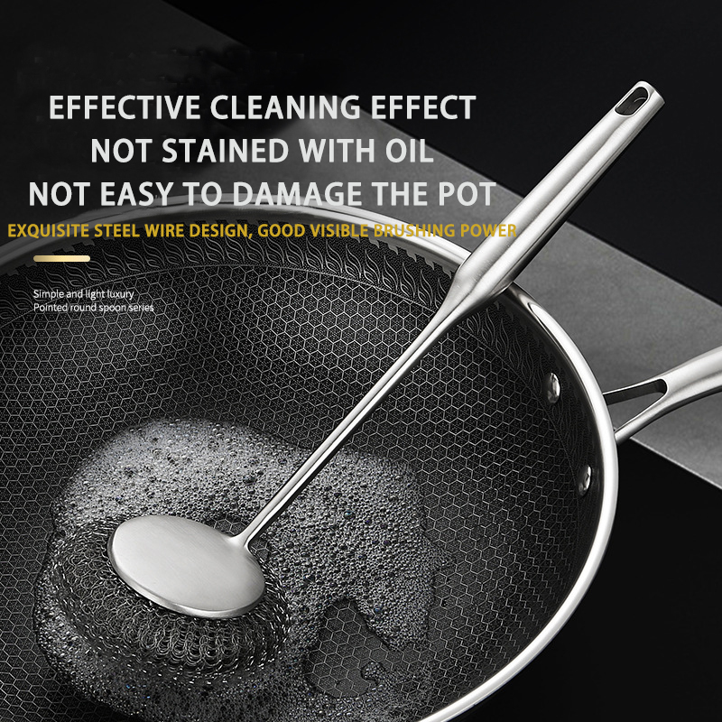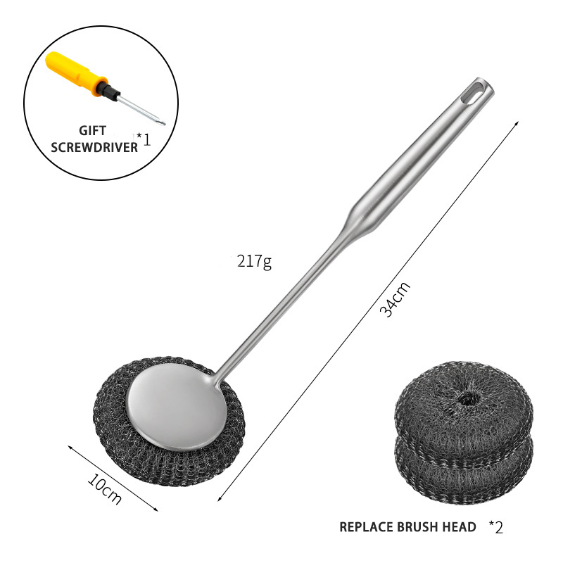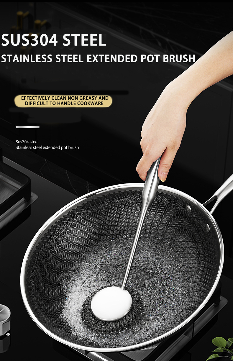 DINUO stainless steel brush pot kitchen specific long handled steel wire ball pot brush JYDN-L-195